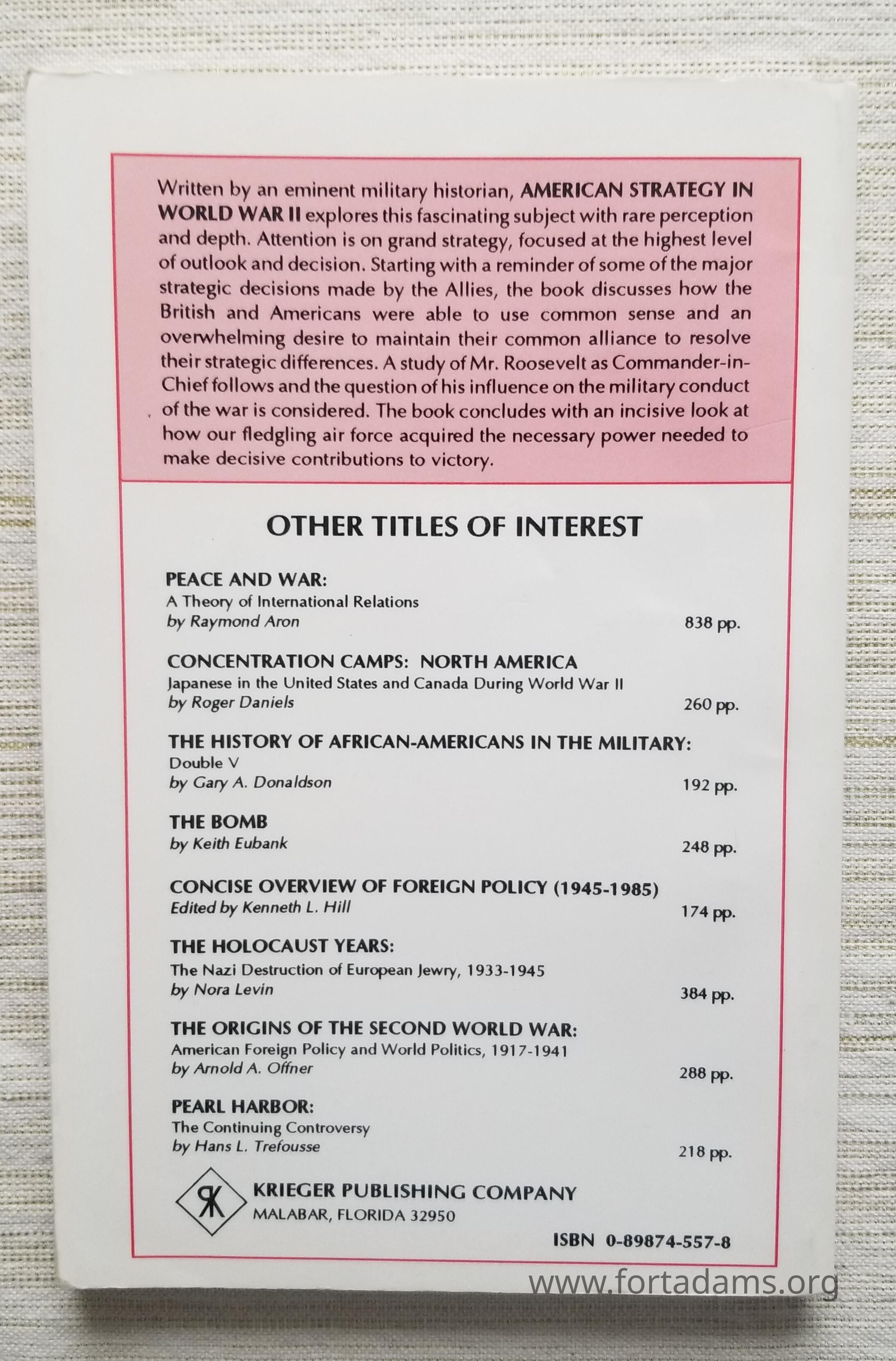 American Strategy in World War II A ReconsiderationDescription