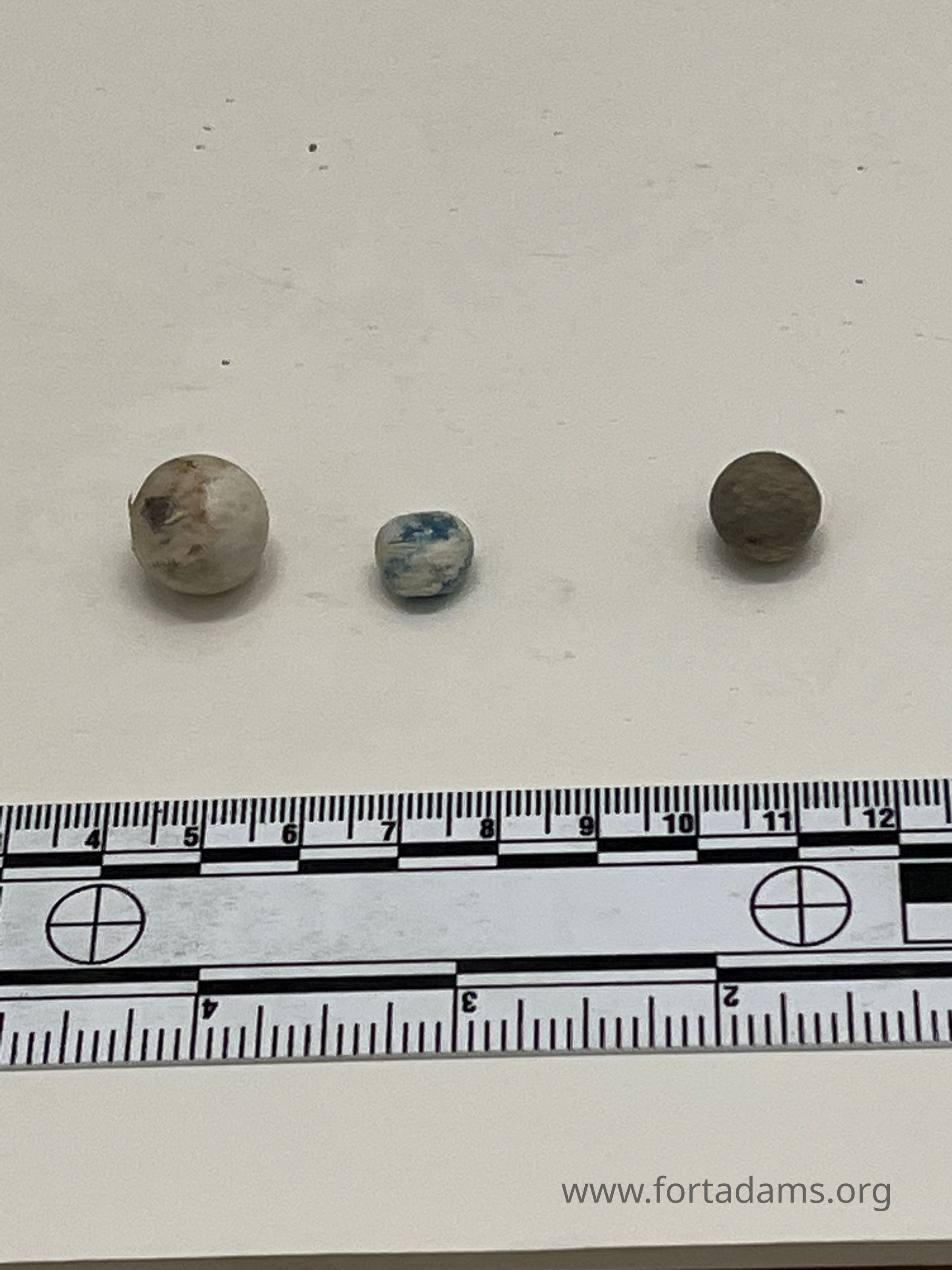 Ceramic ball, glass bead, lead musket ball NE Tenailles 8/76