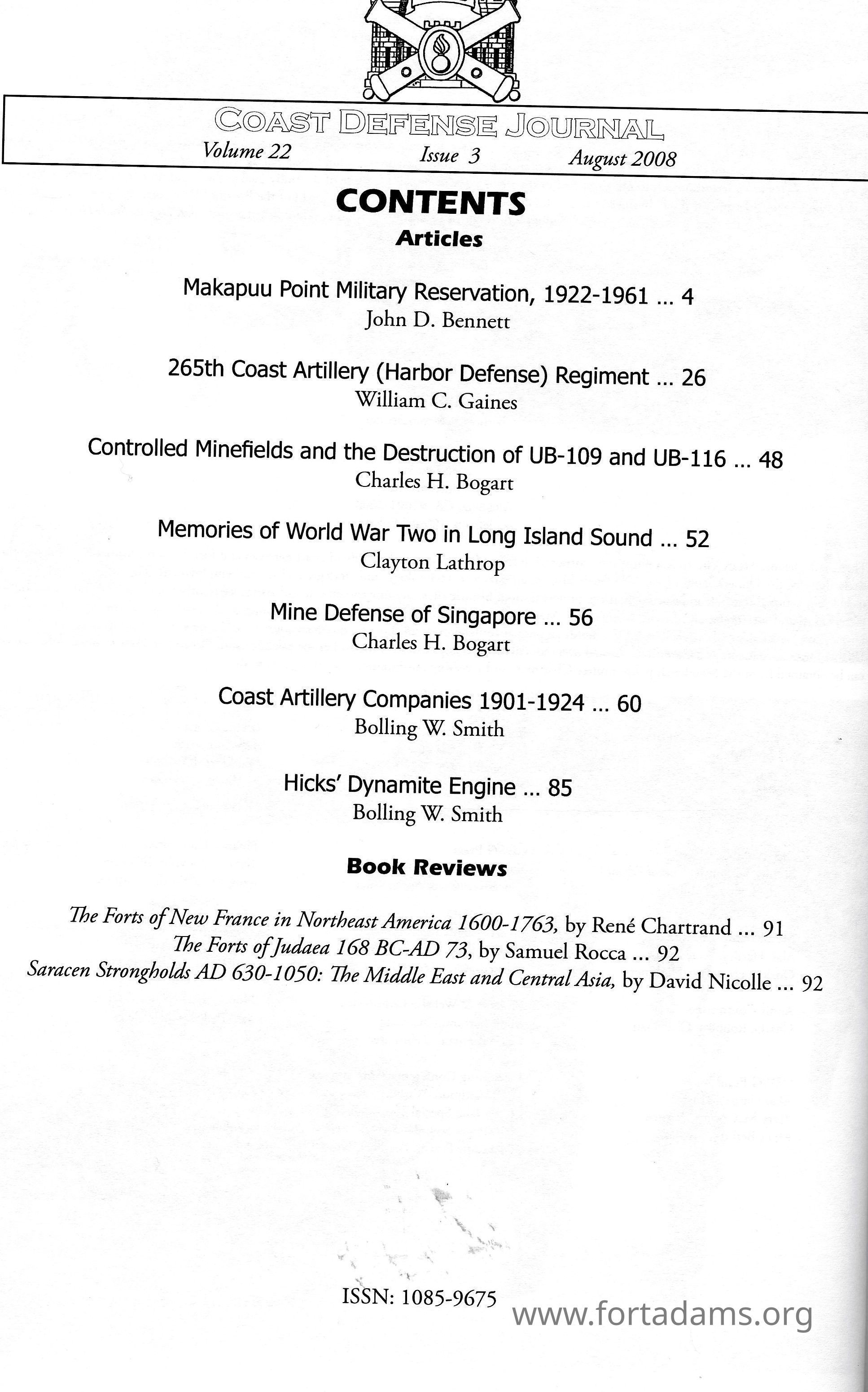Coast Defense Journal: August 2008