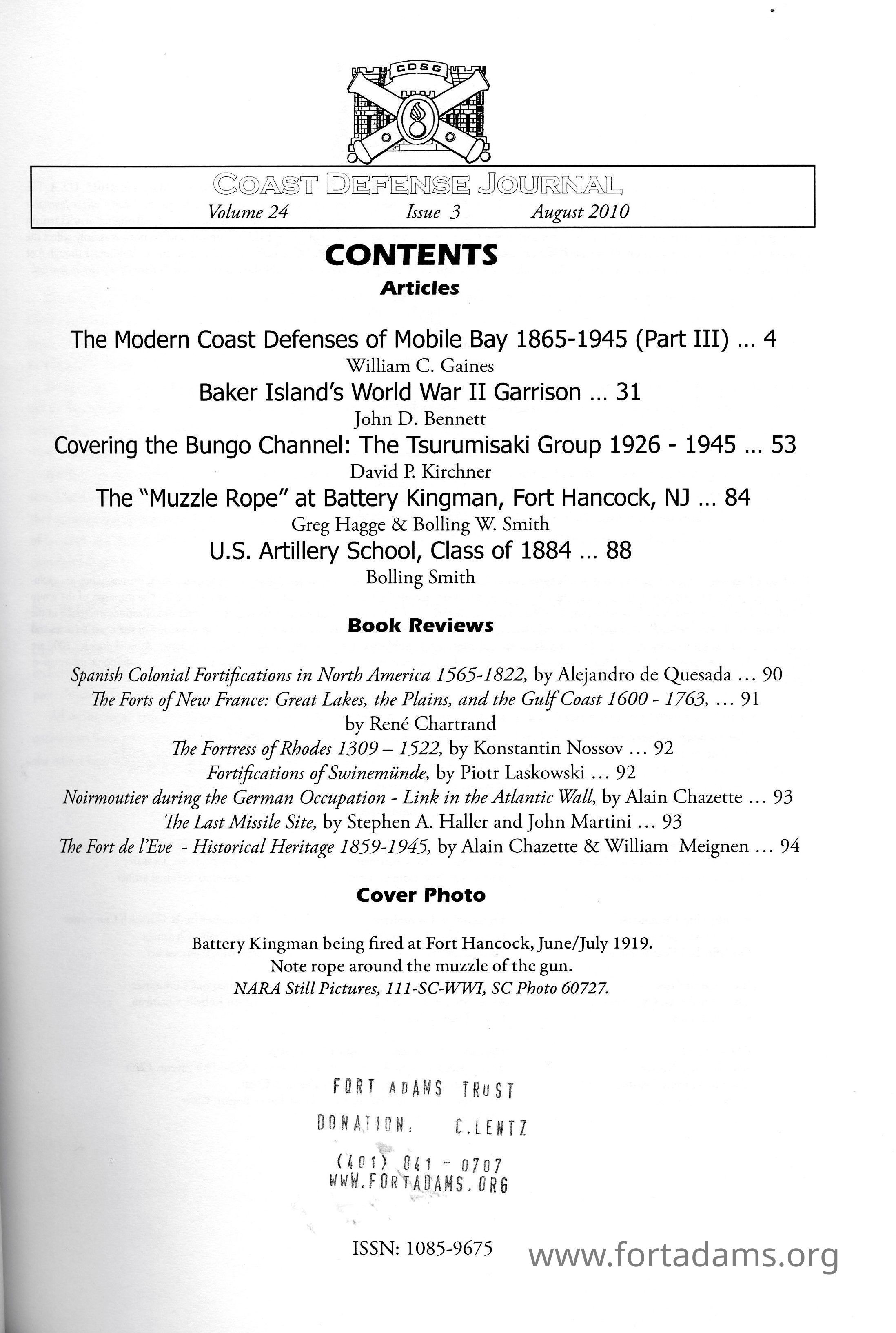 Coast Defense Journal: August 2010