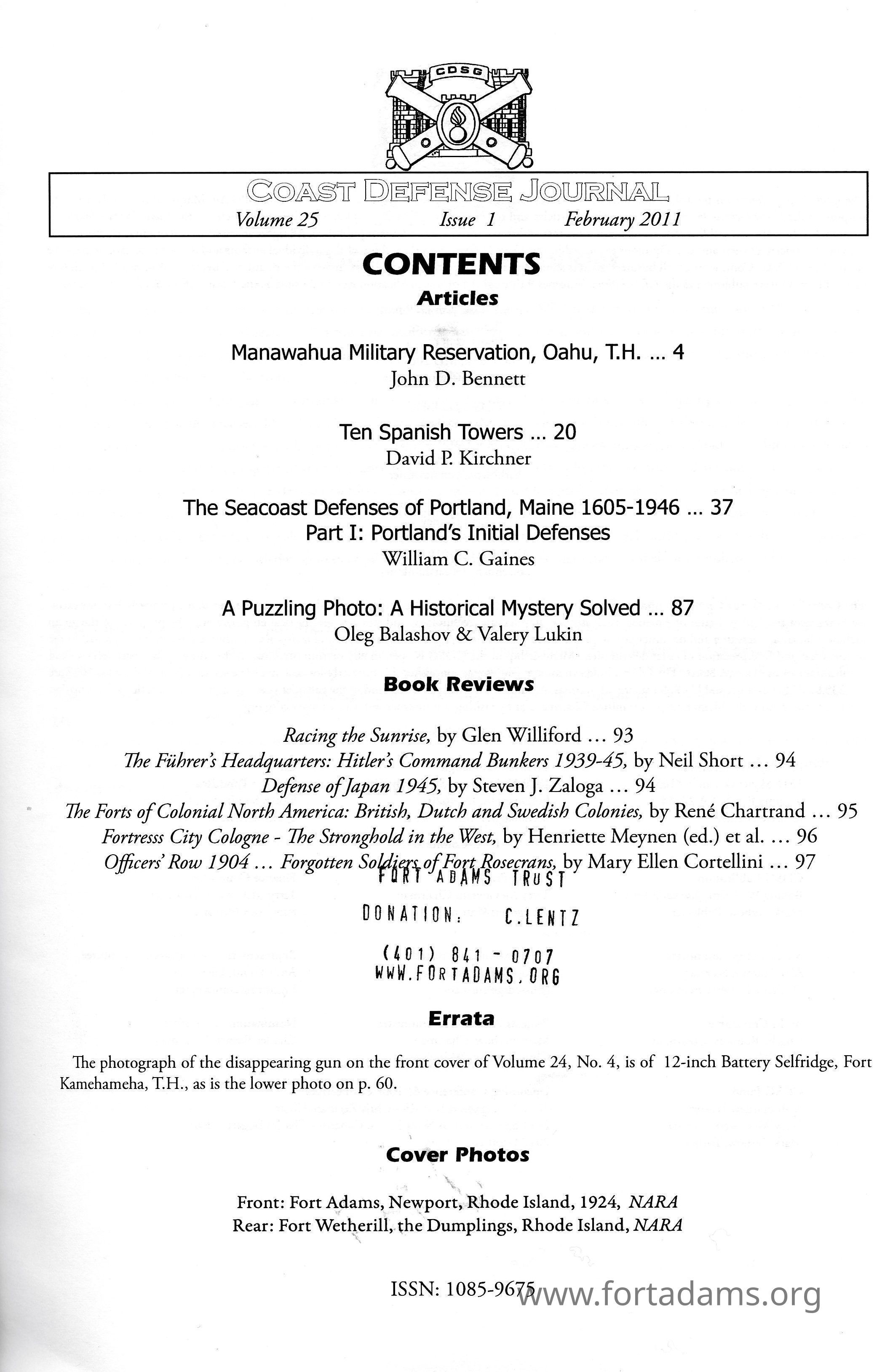 Coast Defense Journal: February 2011