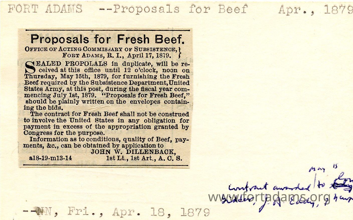 Sealed proposals in duplicate will be received at this office until 12 o'clock. The contract of Fresh Beed shall not be construed to involve the U.S in any obligation for payment.
