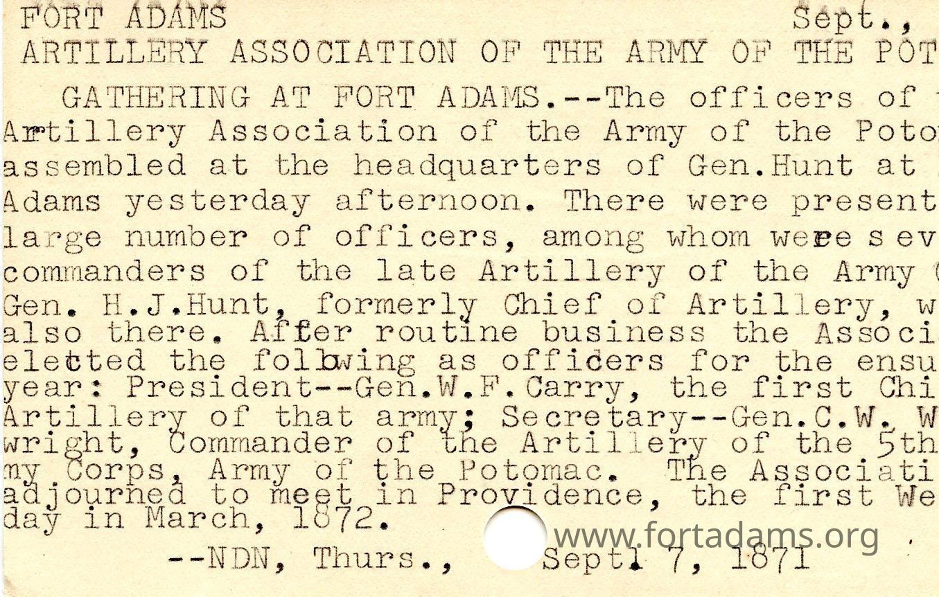 Fort Adams: ARTILLERY ASSOCIATATION