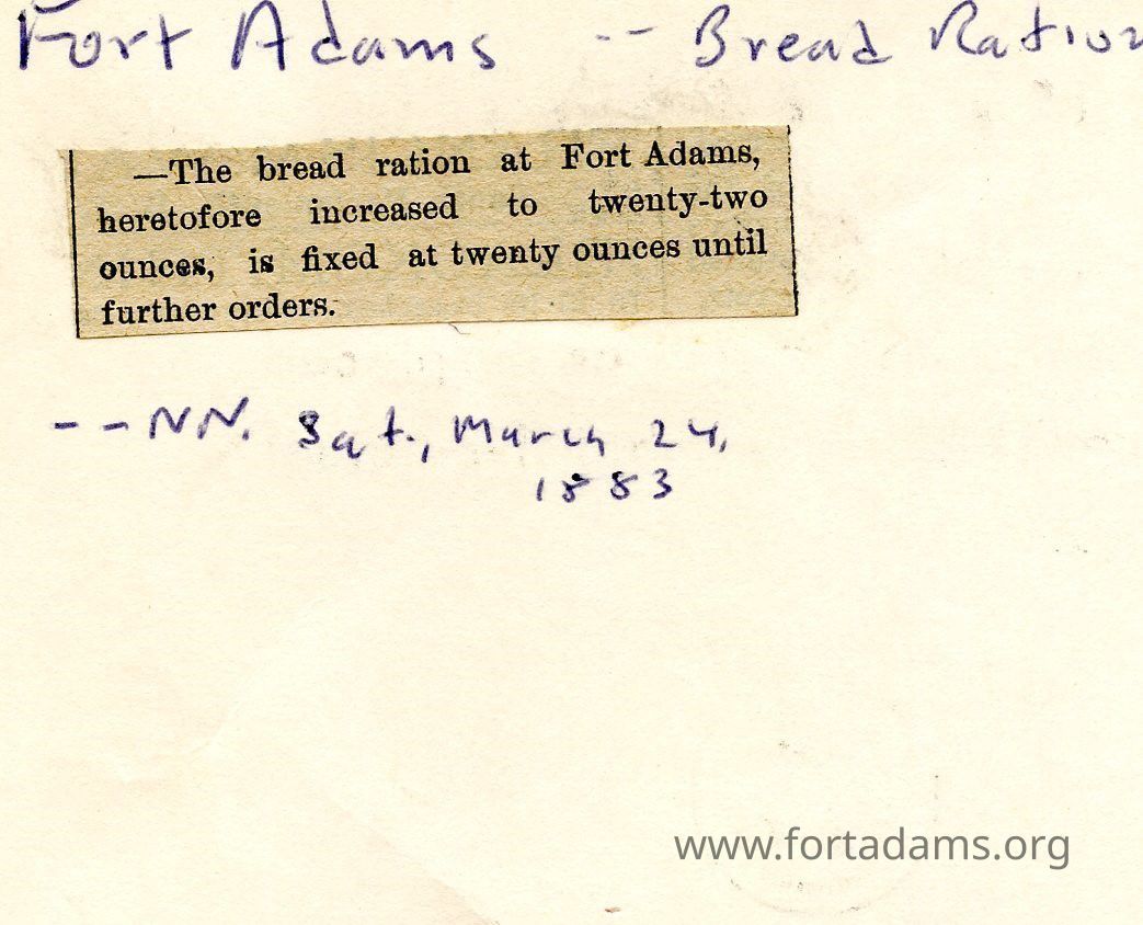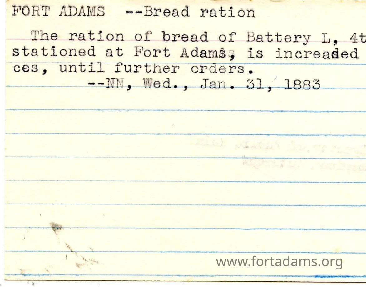 The ration of bread of Battery L 4th stationed at Fort Adams has increased their bread ration by 20 ounces further orders.
