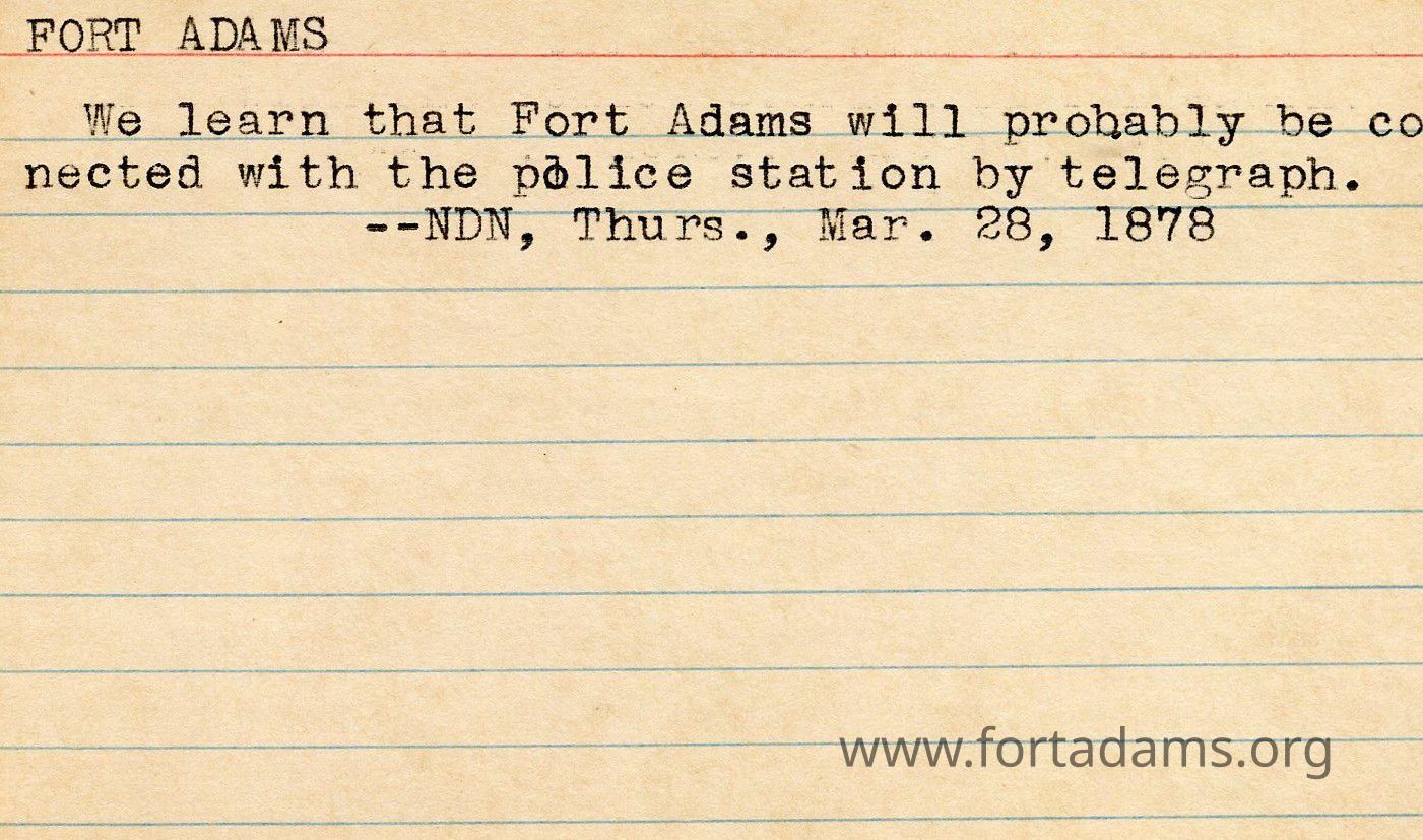 We learn that Fort Adams Will be connected to the police station by telegraph.