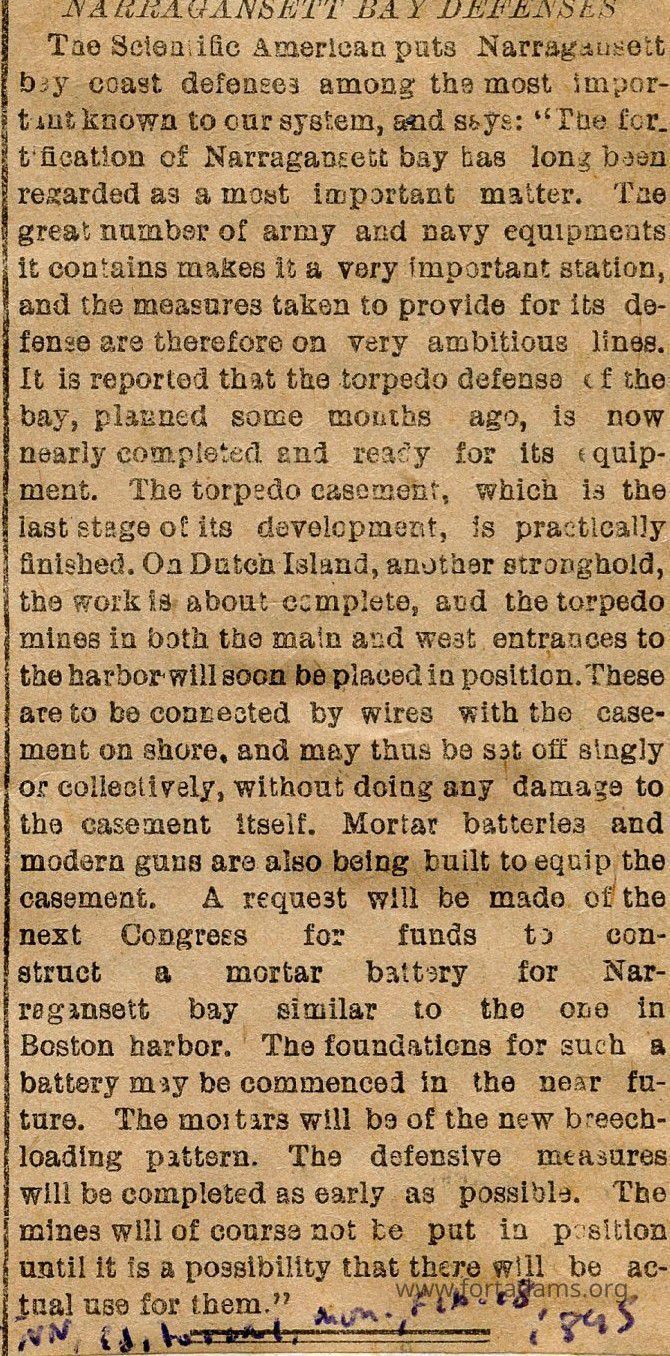The Narragansett Bay coast defenses is among one of the most important station. And the people are wanting to defend it more. So they're building some better defenses to help keep Rhode Island safe and sound