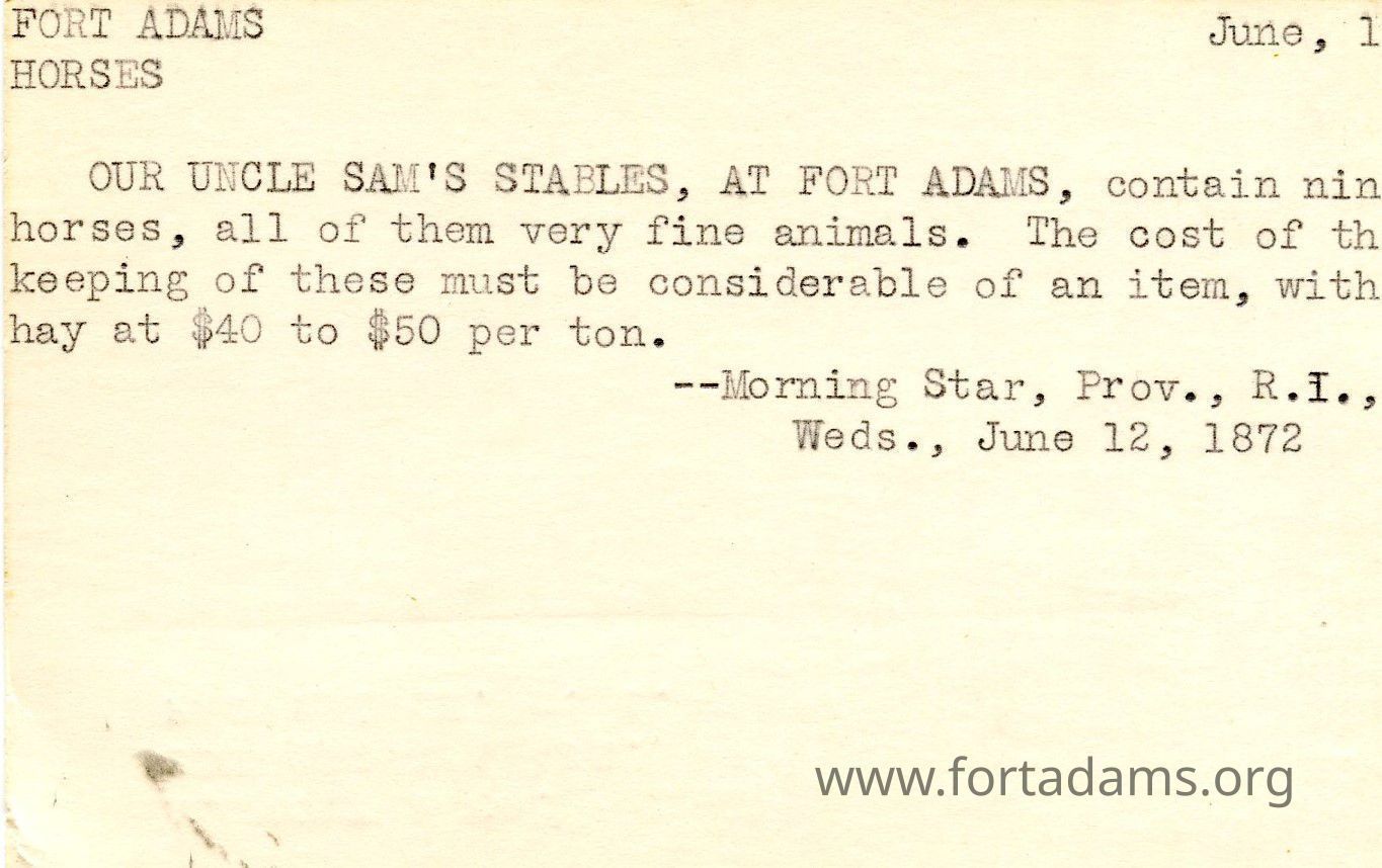 Fort Adams OUR UNCLE SAM'S STABLES