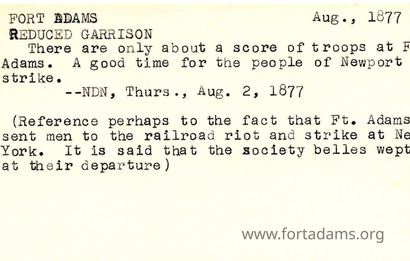 There is only a score of troops at Fort Adams. A good time for people of Newport to Strike