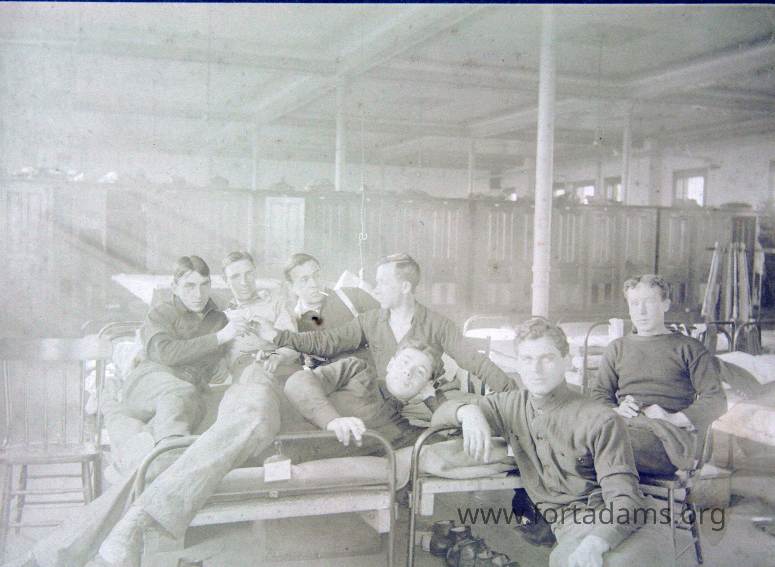 Group of men in barracks