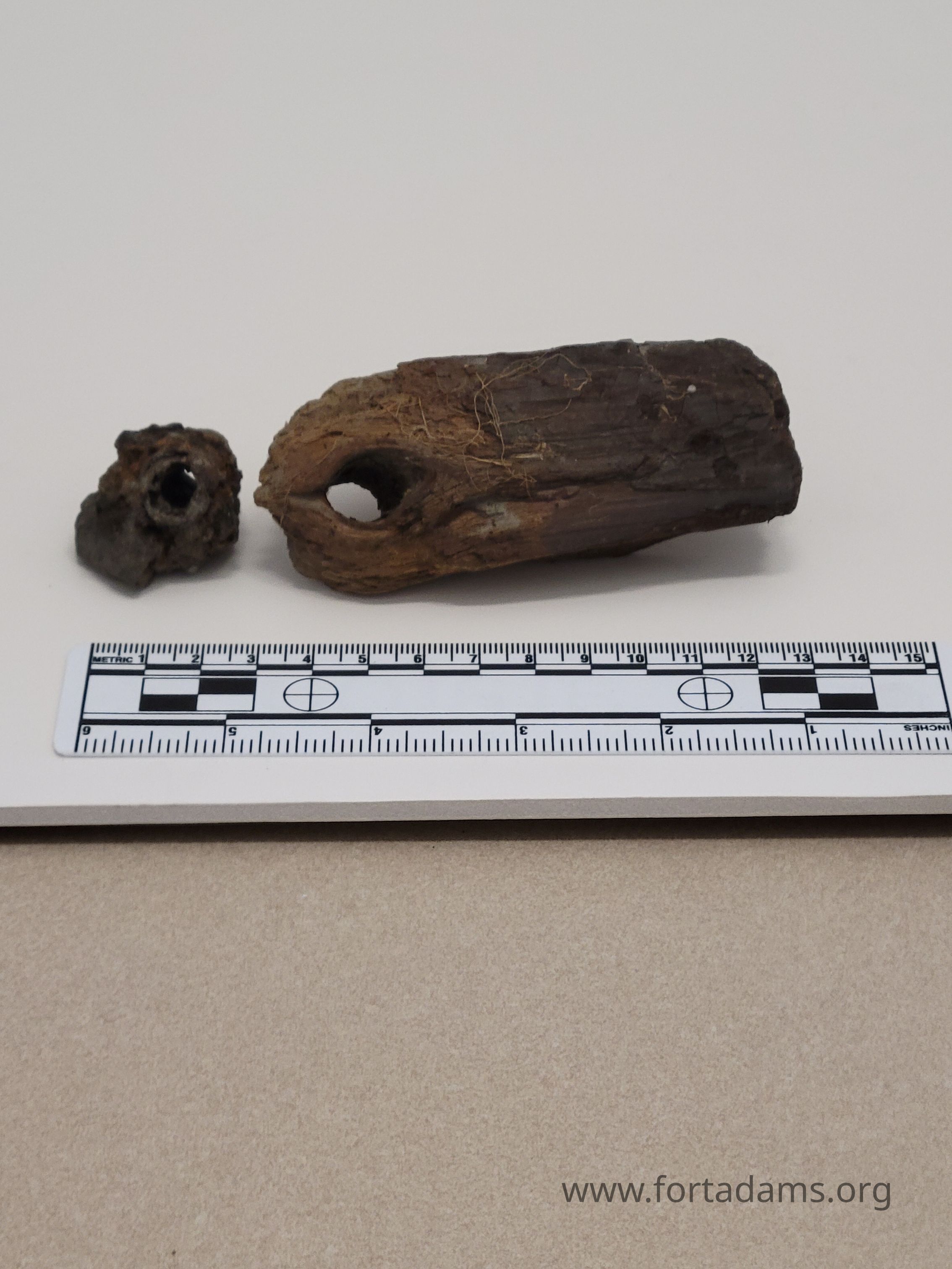 Metal fragment. Wood with hole. NW Bastion 8/16/76