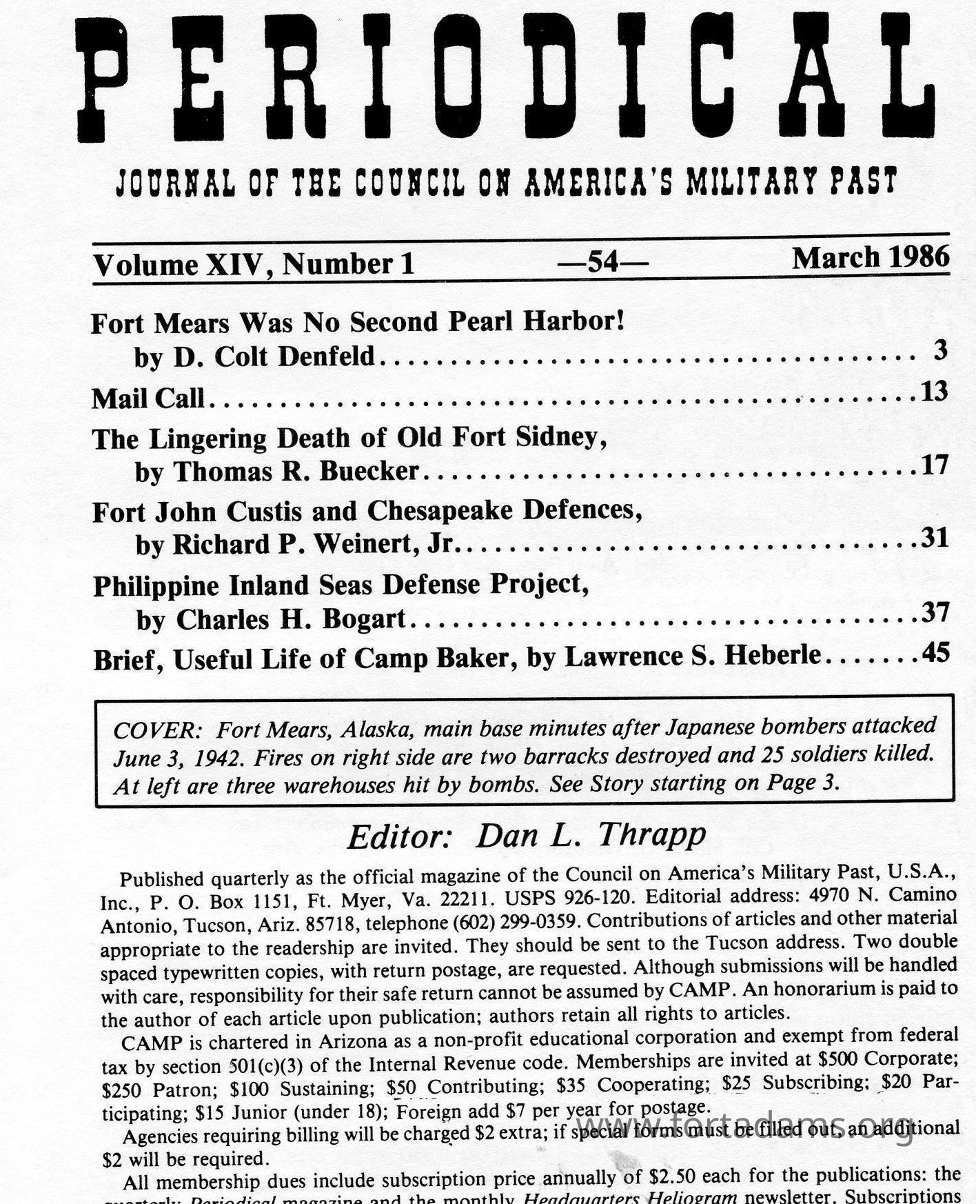 The Journal of America's Military Past: March 1986