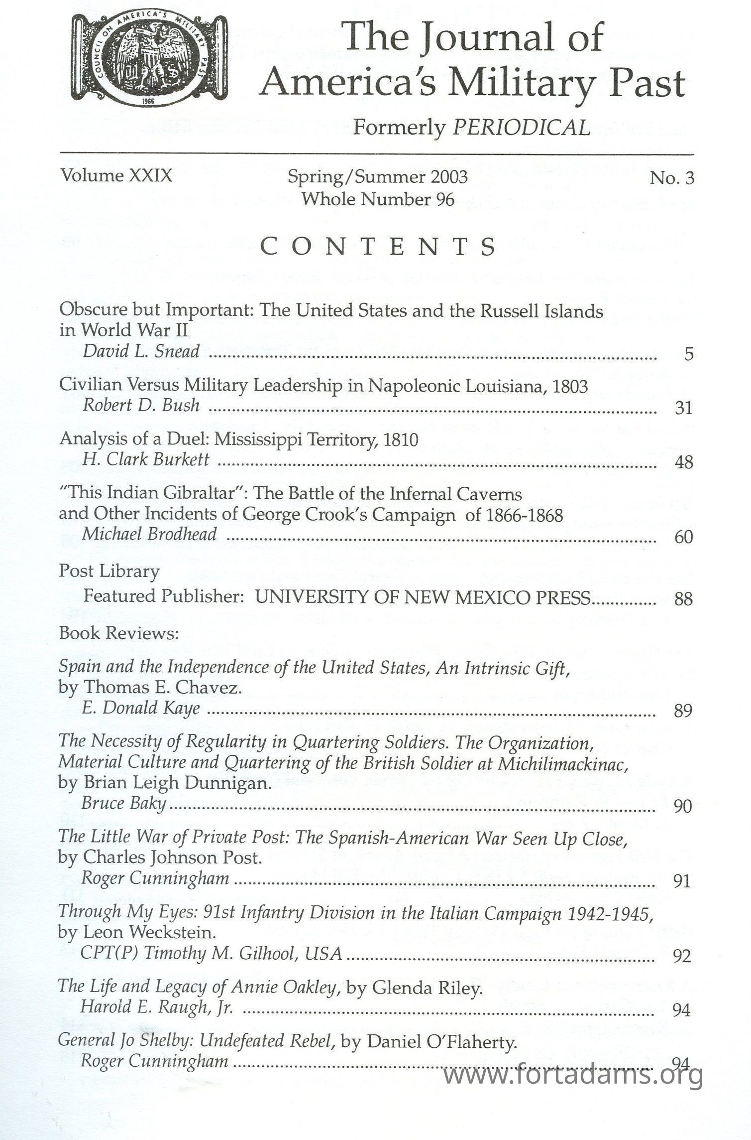 The Journal of America's Military Past: Spring/Summer 2003