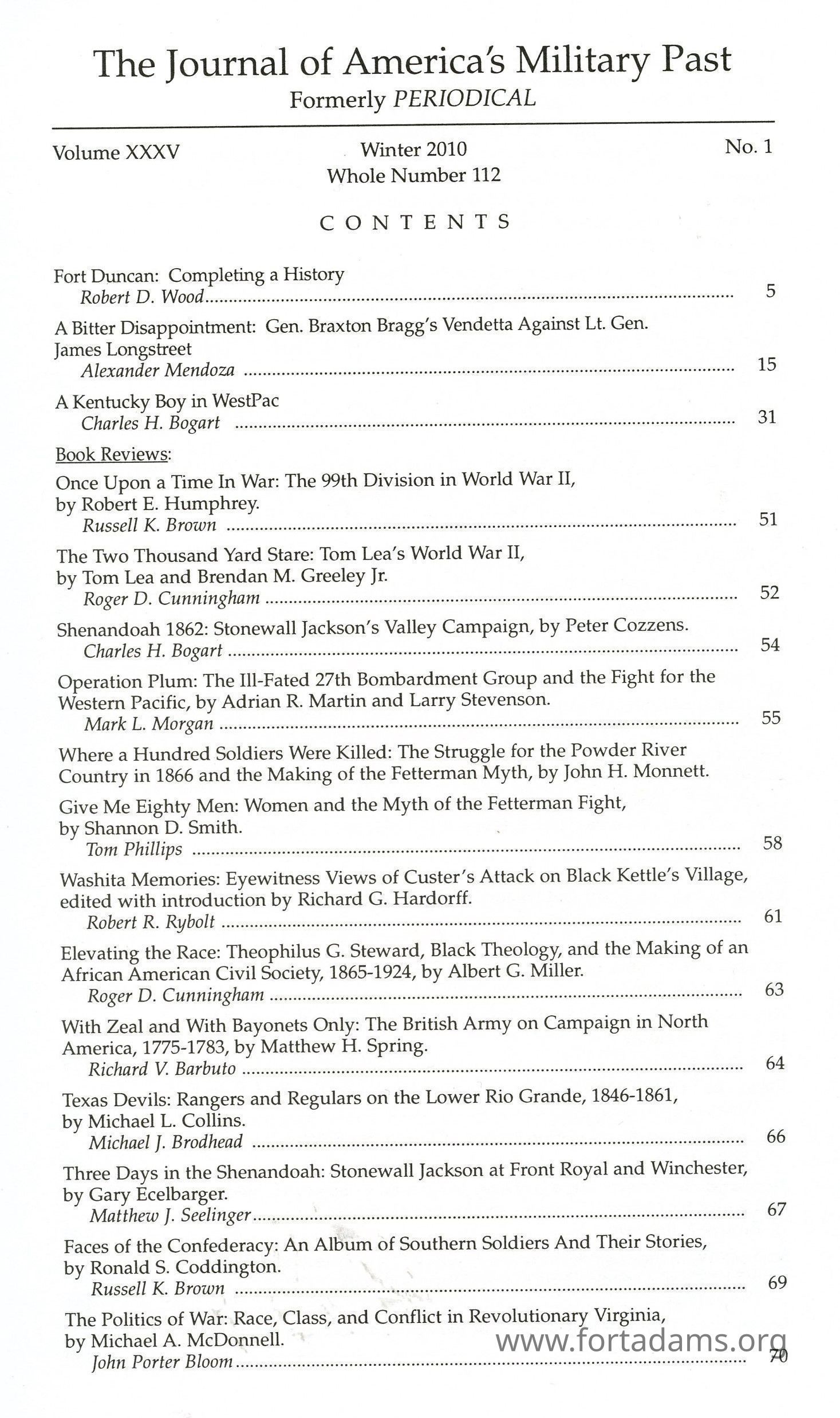 The Journal of America's Military Past: Winter 2010