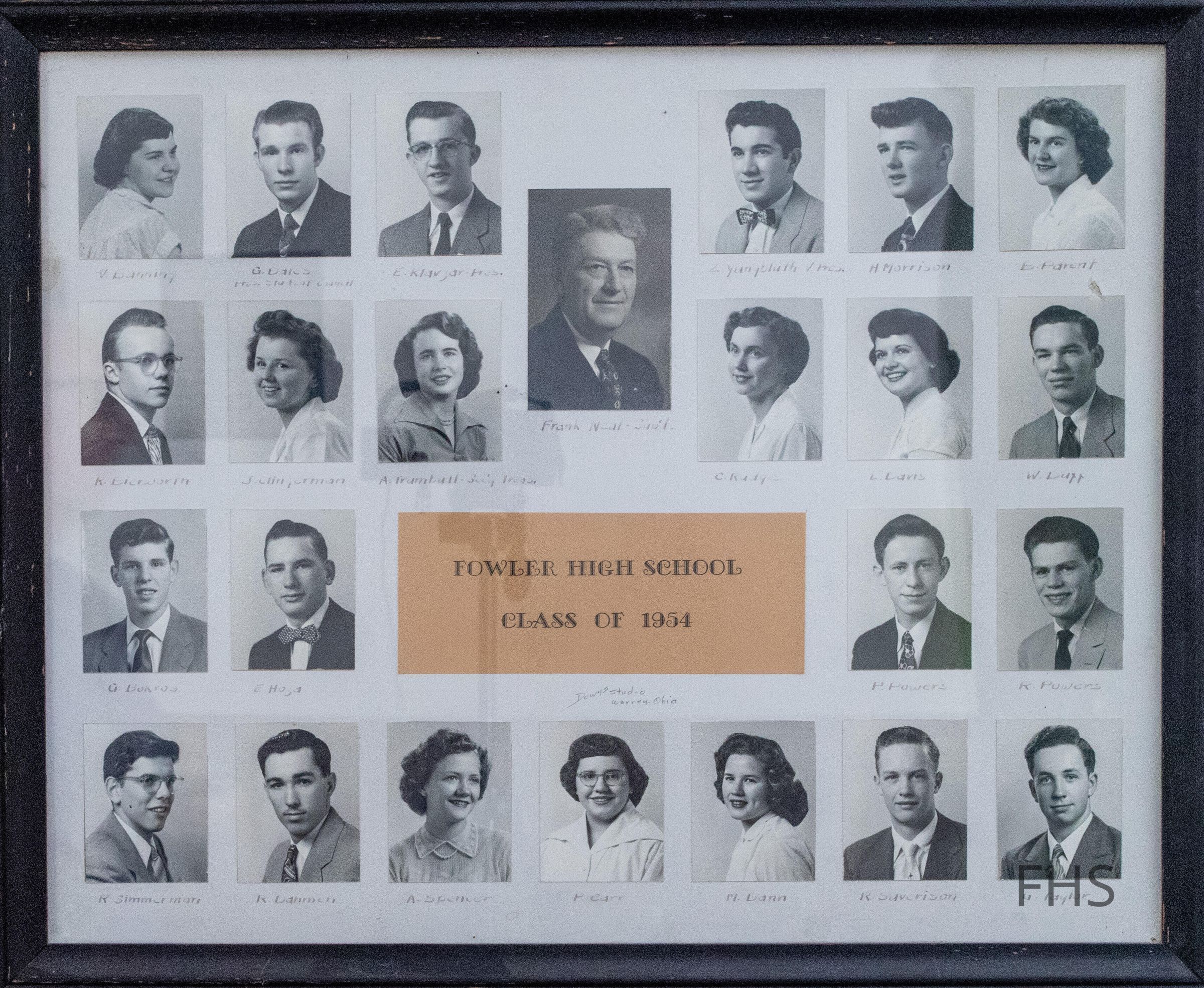 A senior class photograph from Fowler High School in 1954.