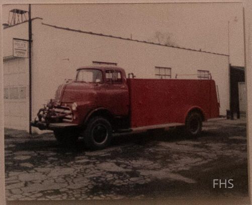 A photograph of a 1956 Dodge Tanker Truck used by the Fowler Fire Department from 1956- 1986.