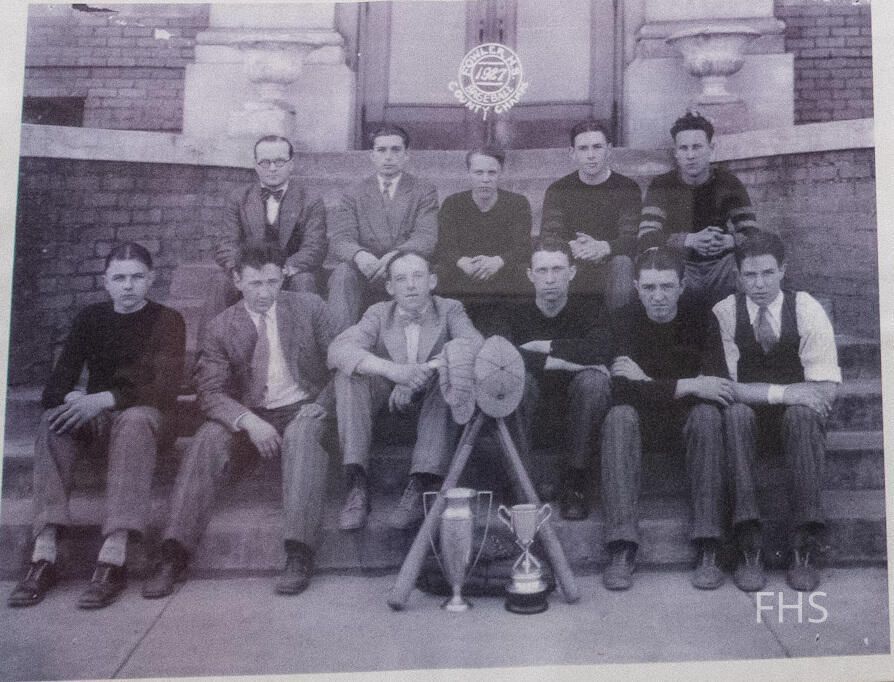 A photograph of the Fowler Boys Baseball Team from 1927.Cataloged By