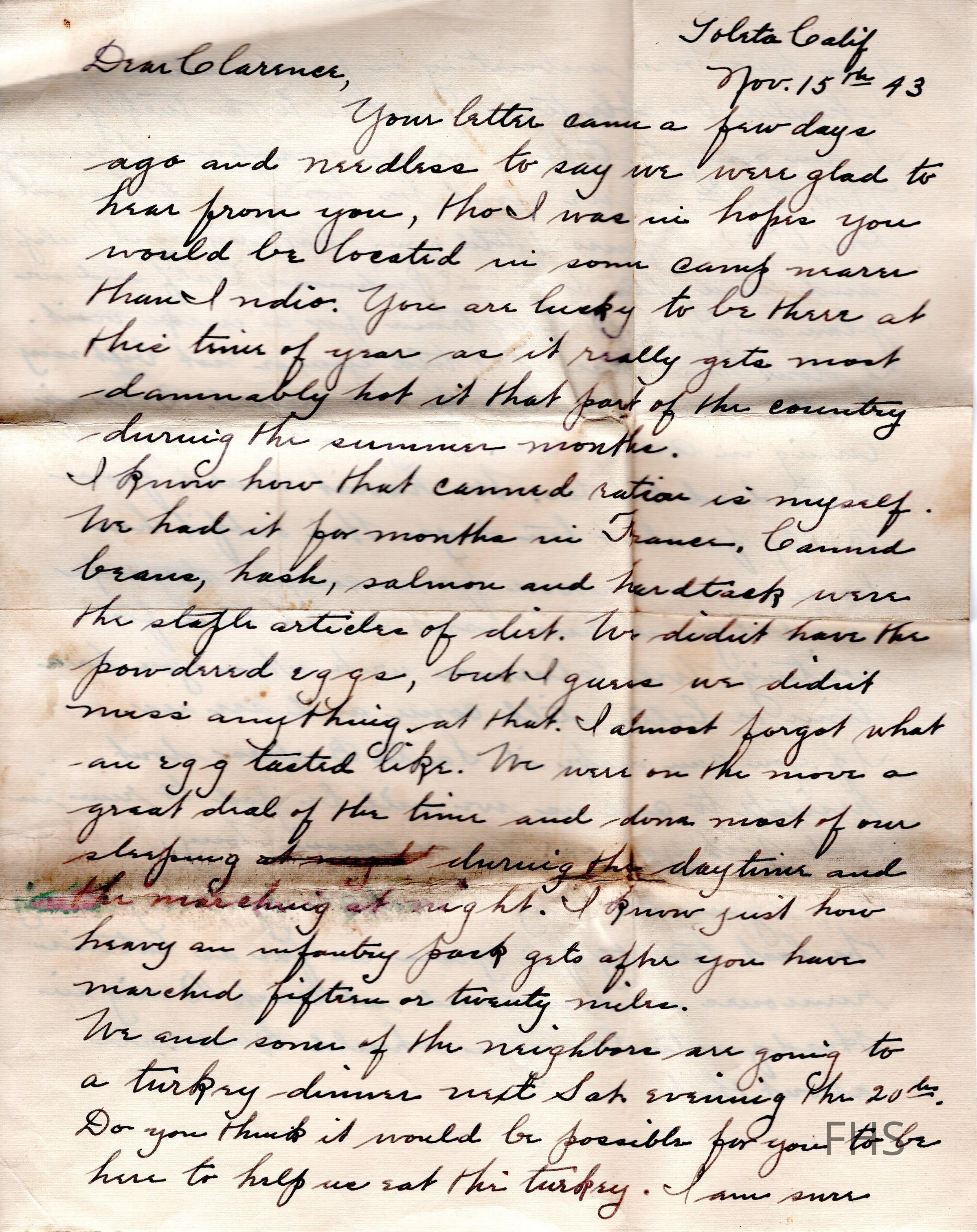 A letter written to Clarence Dahman from his cousin while he was serving in the army in 1943.Collection