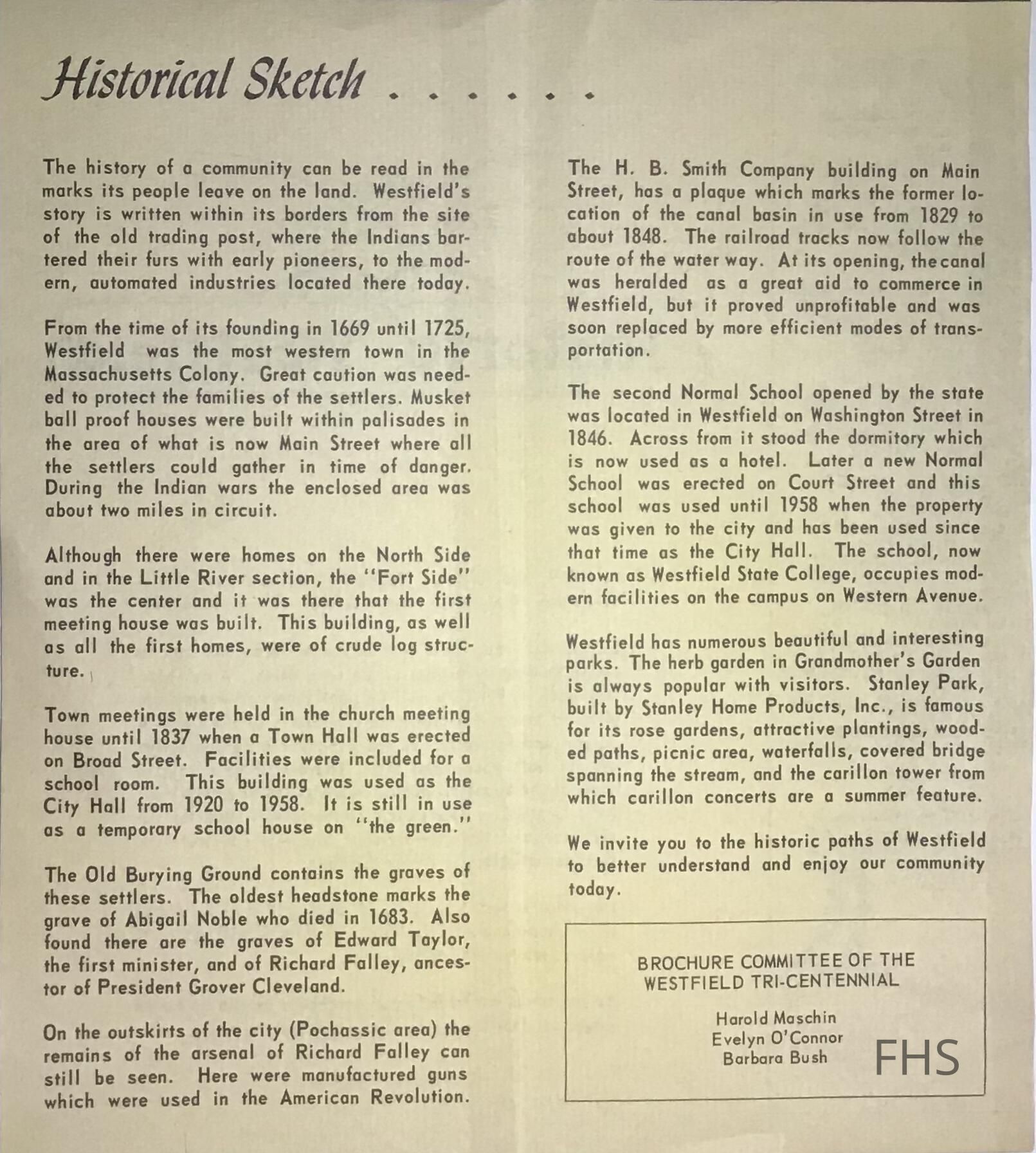 Westfield Historical Brochure, 2005Entry/Object ID