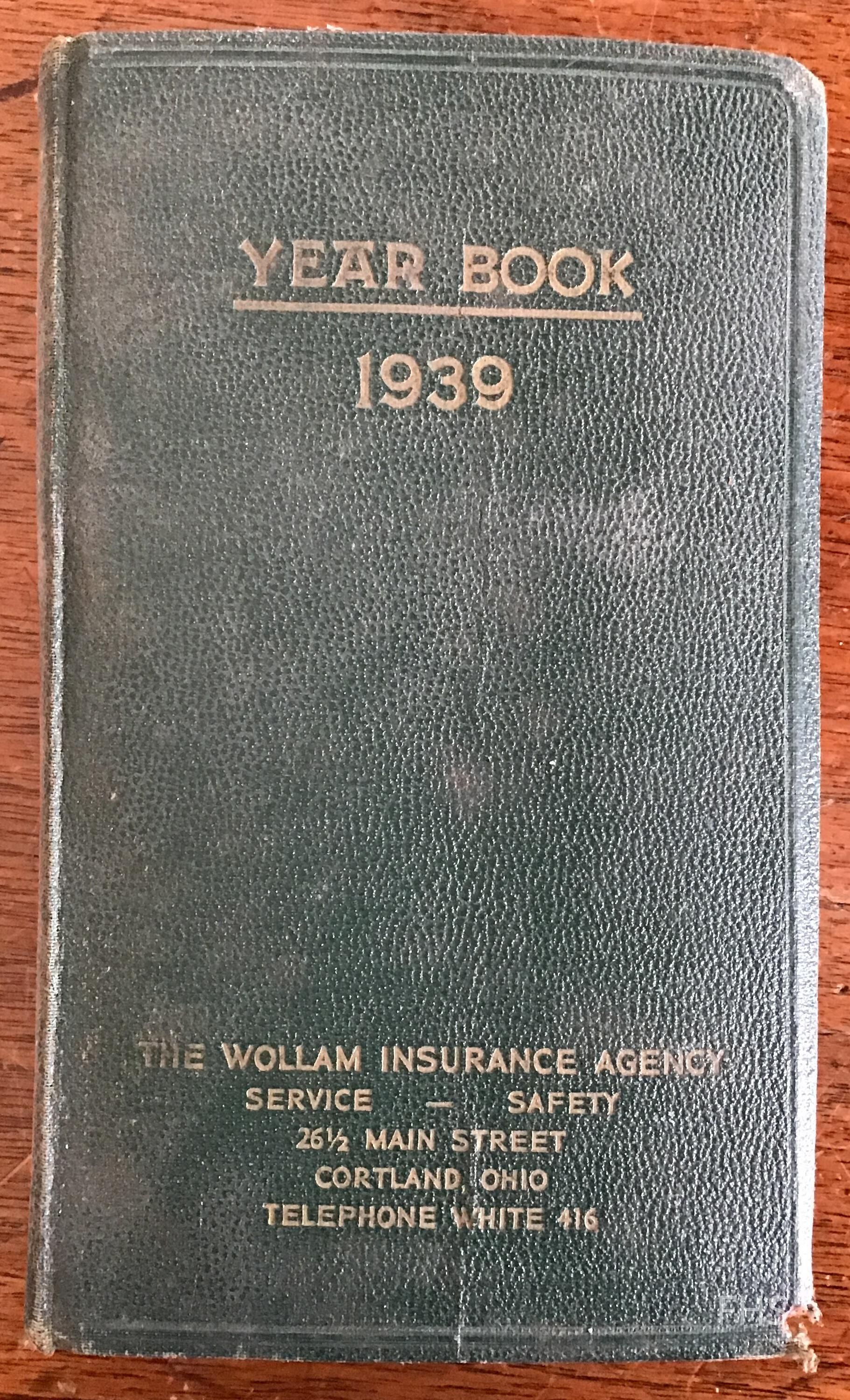 A datebook/ledger used by an unknown person to list financial daily records from 1939. It was published by The Wollam Insurance Agency, 26 1/2 Main St. Cortland, Ohio, for customers.Archive Details