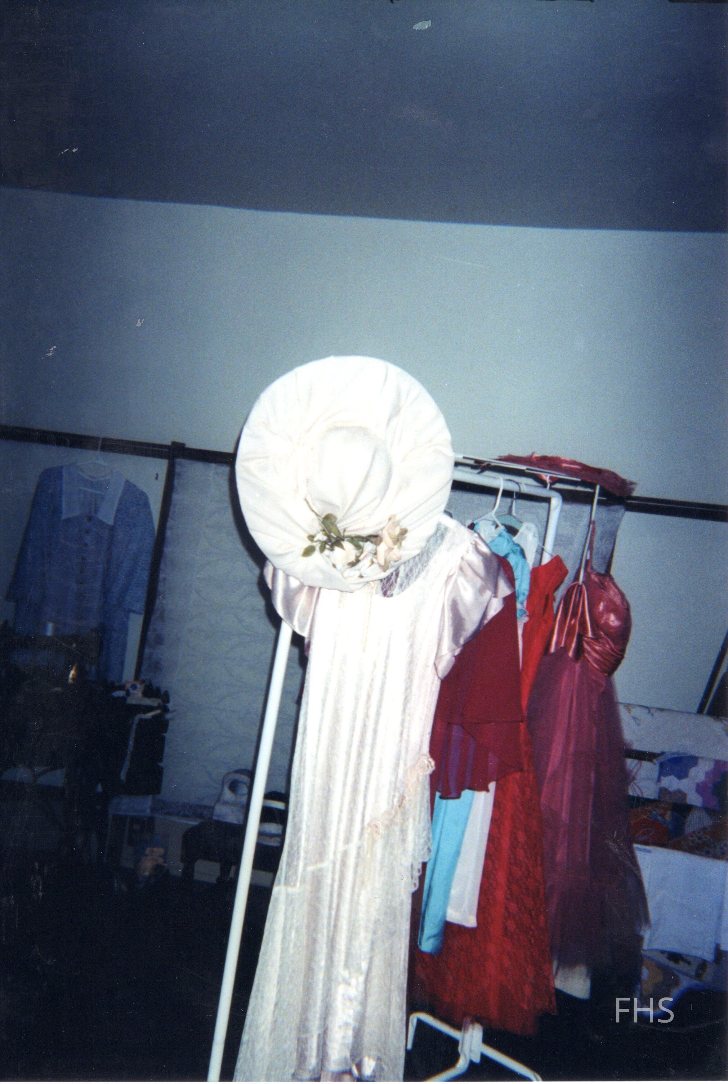 A photograph of a temporary display of bridal dresses at the Butts Museum by the Fowler Historical Society.Cataloged By