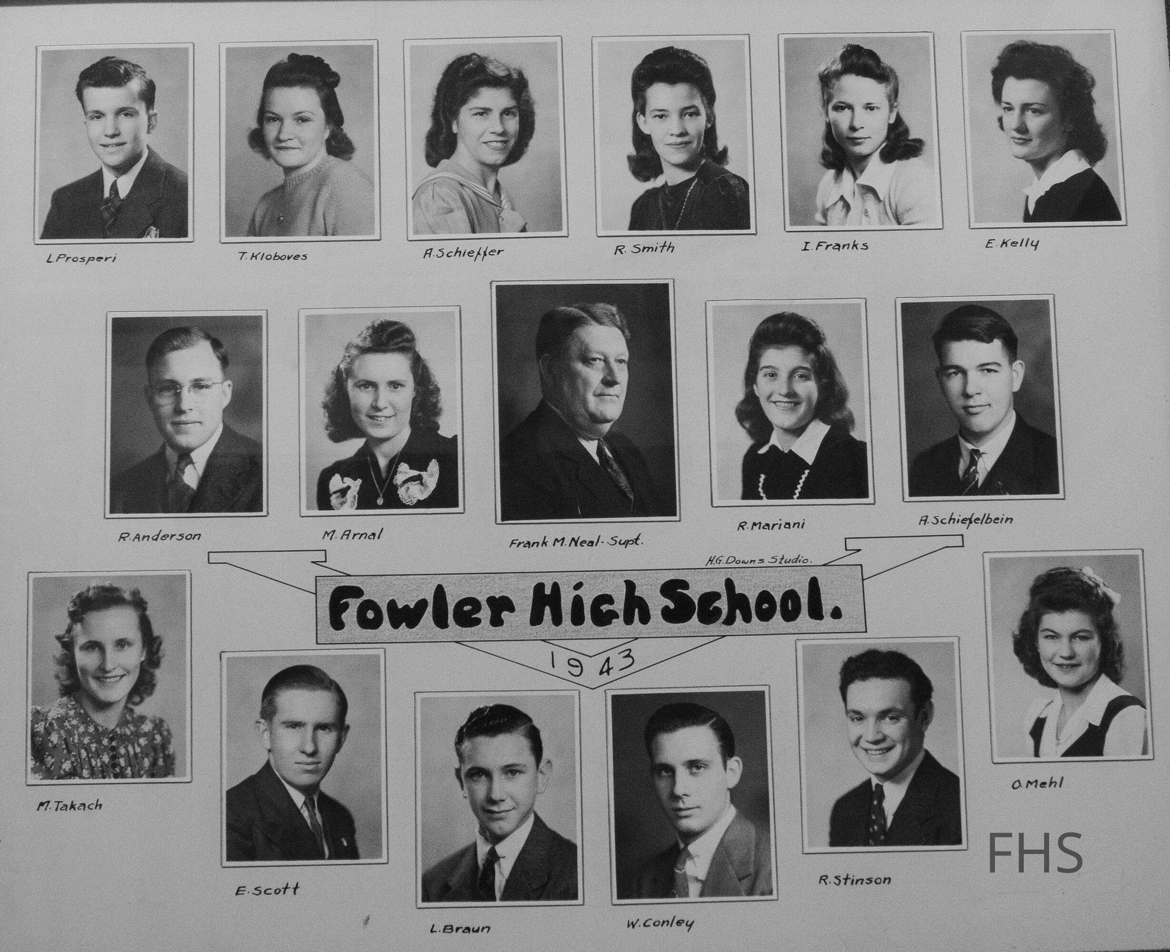 A senior class photograph from Fowler High School in 1943.