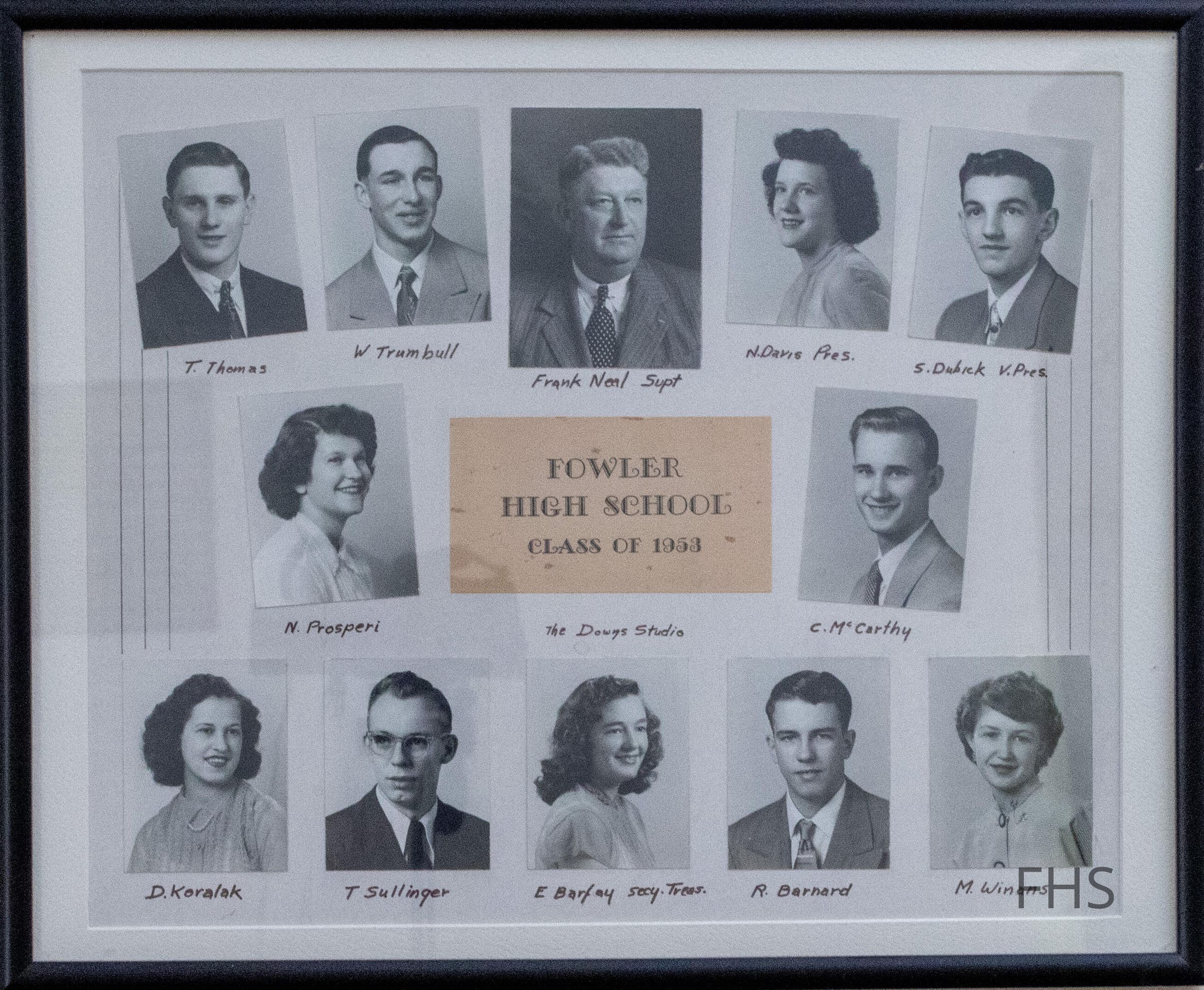 A senior class photograph from Fowler High School in 1953.