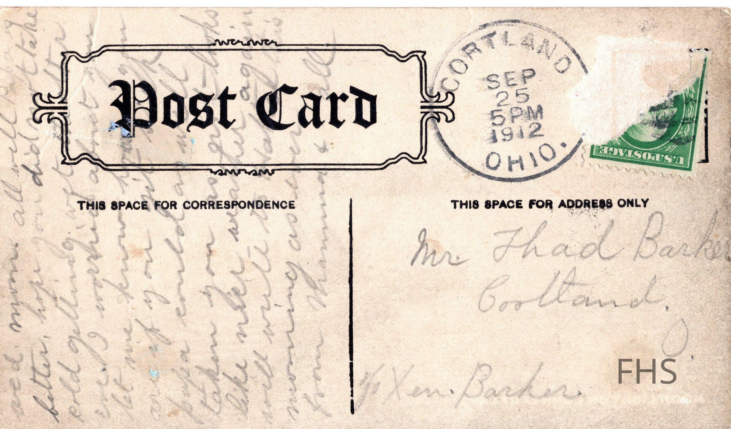 A Conneaut Lake postcard sent to Thad Barker fin 1912.Cataloged By