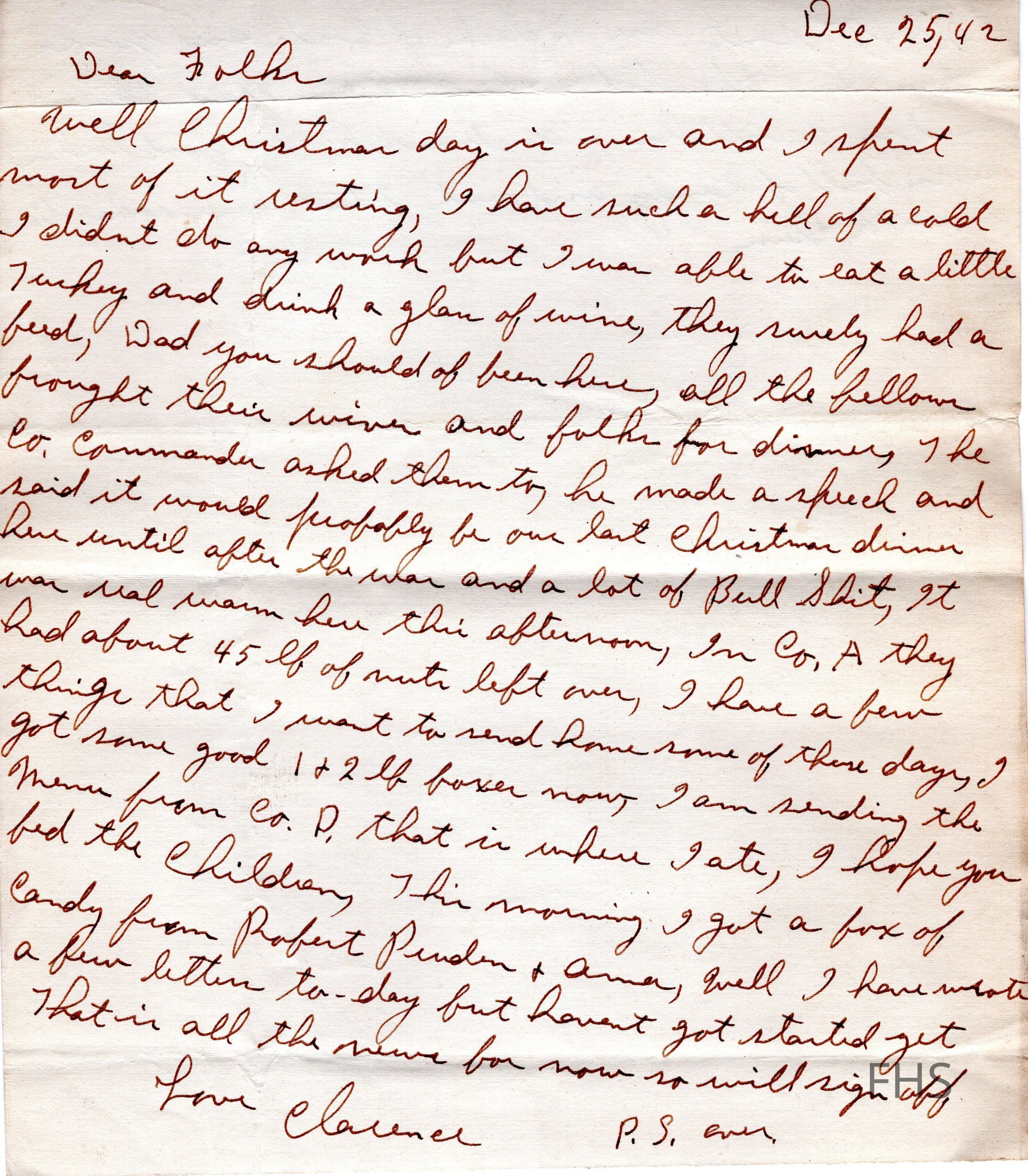 A letter from Clarence Dahman to his family during WWII in 1942.Collection