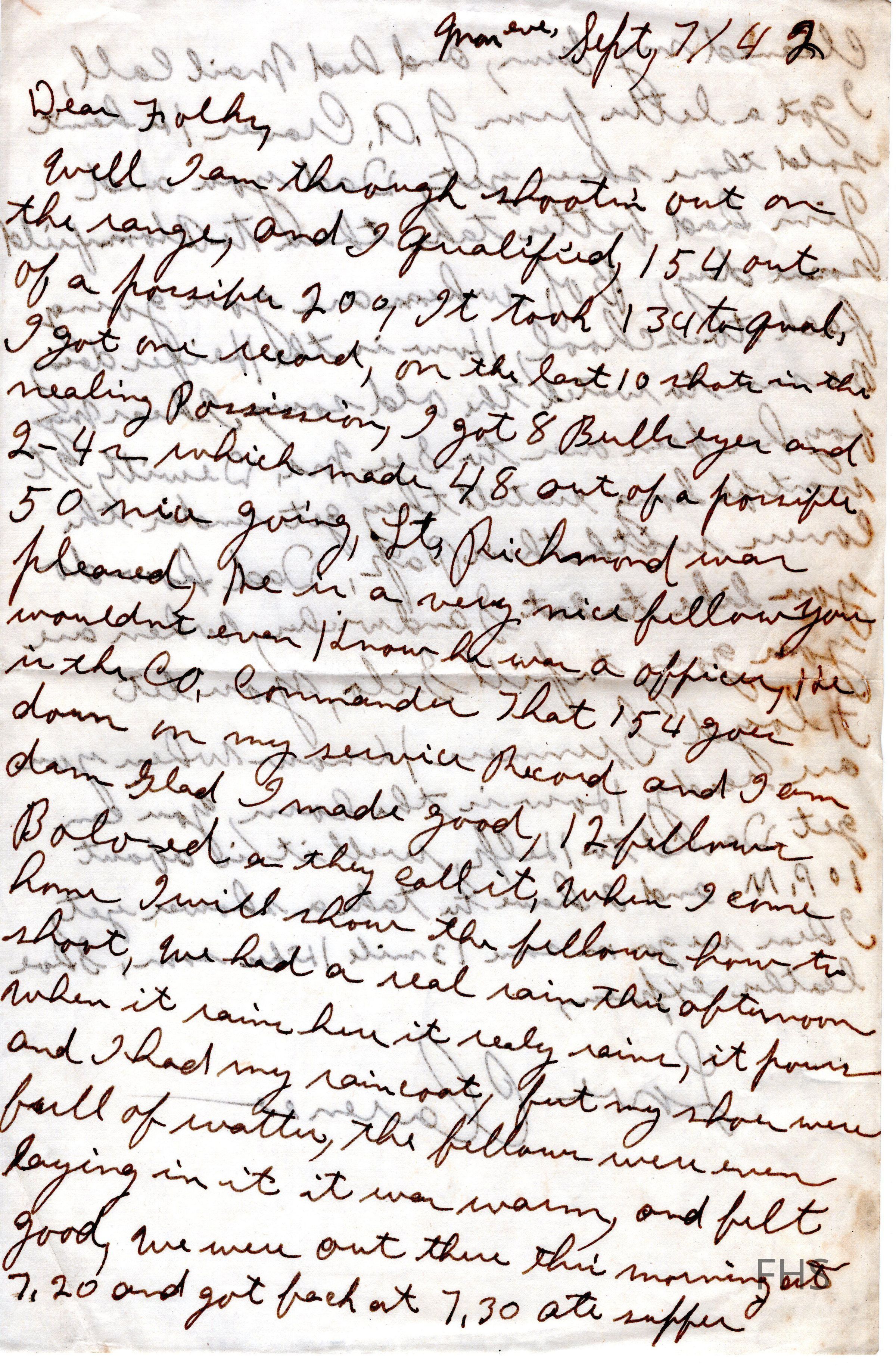 A letter from Clarence Dahman to his family during WWII in 1942.Collection