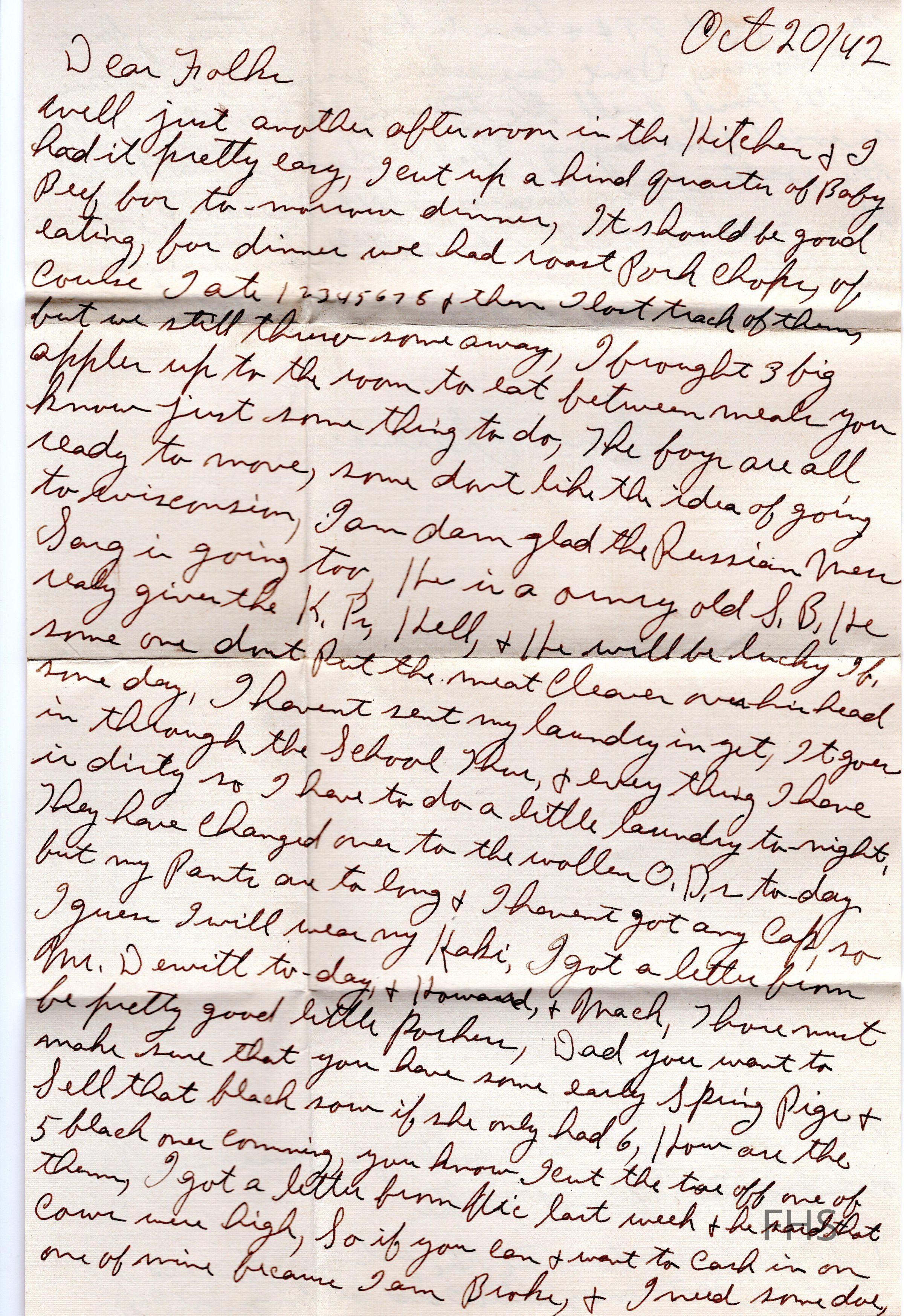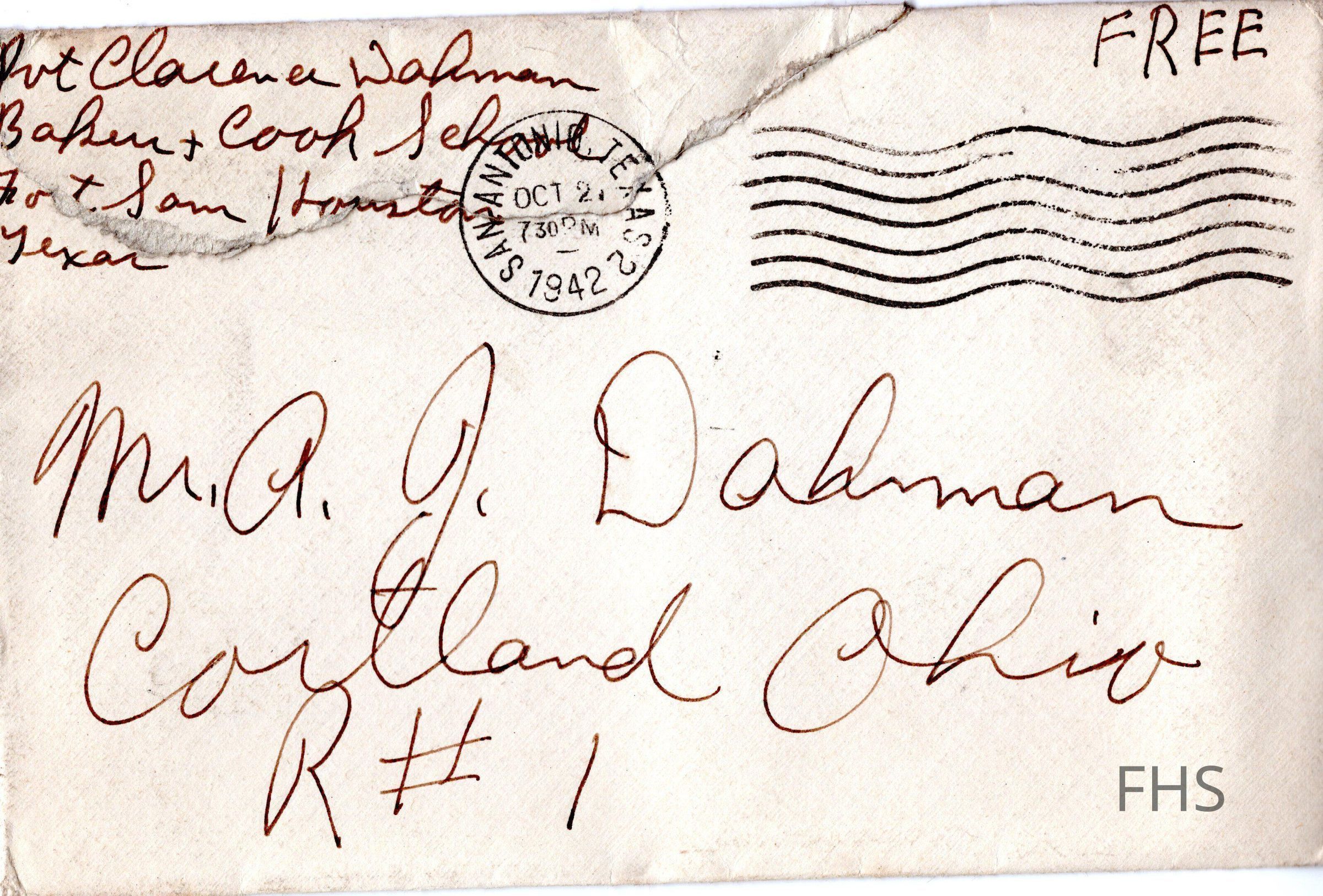 A letter from Clarence Dahman to his family during WWII in 1942.Collection