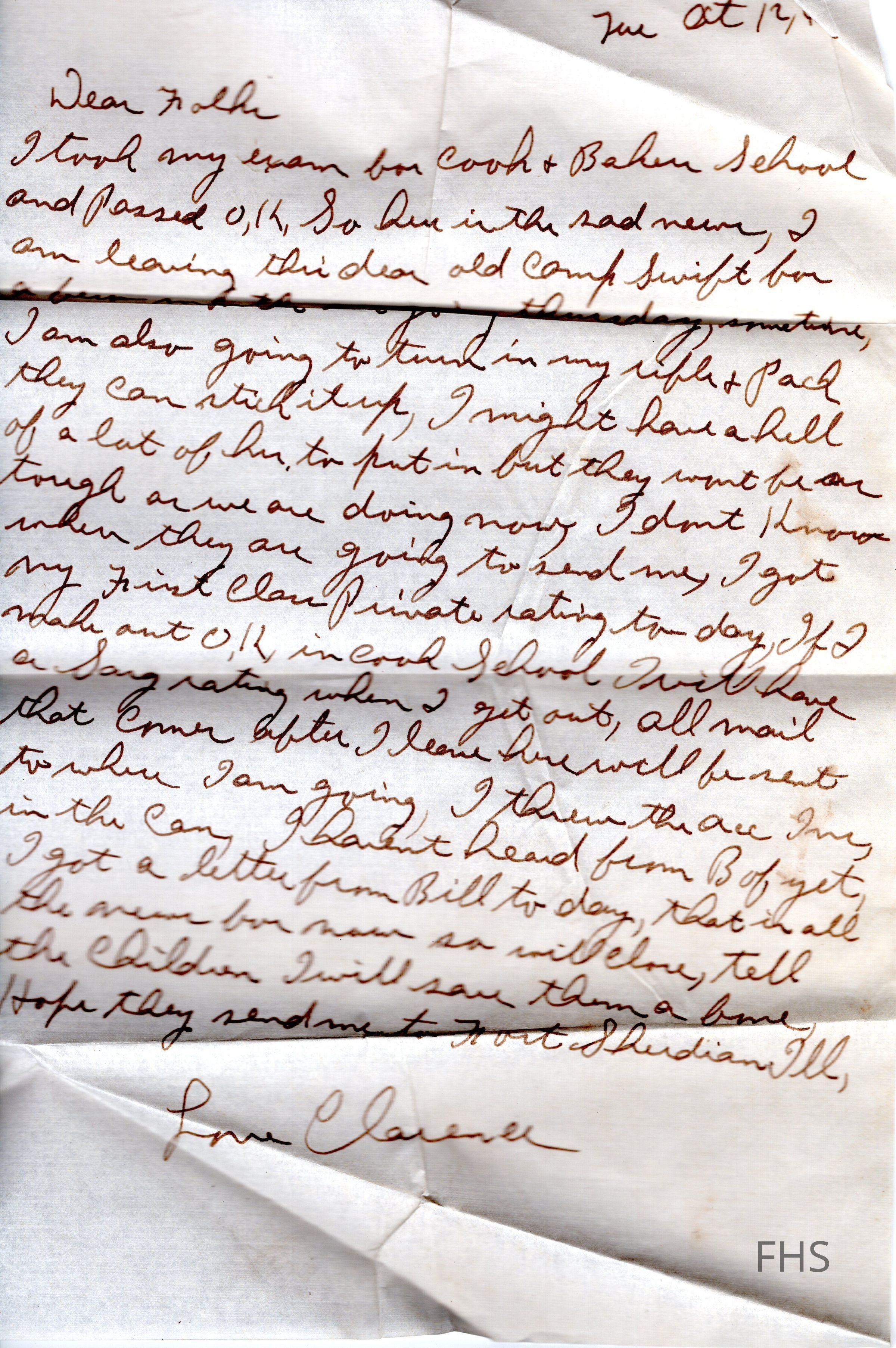 A letter from Clarence Dahman to his family during WWII in 1942.Collection