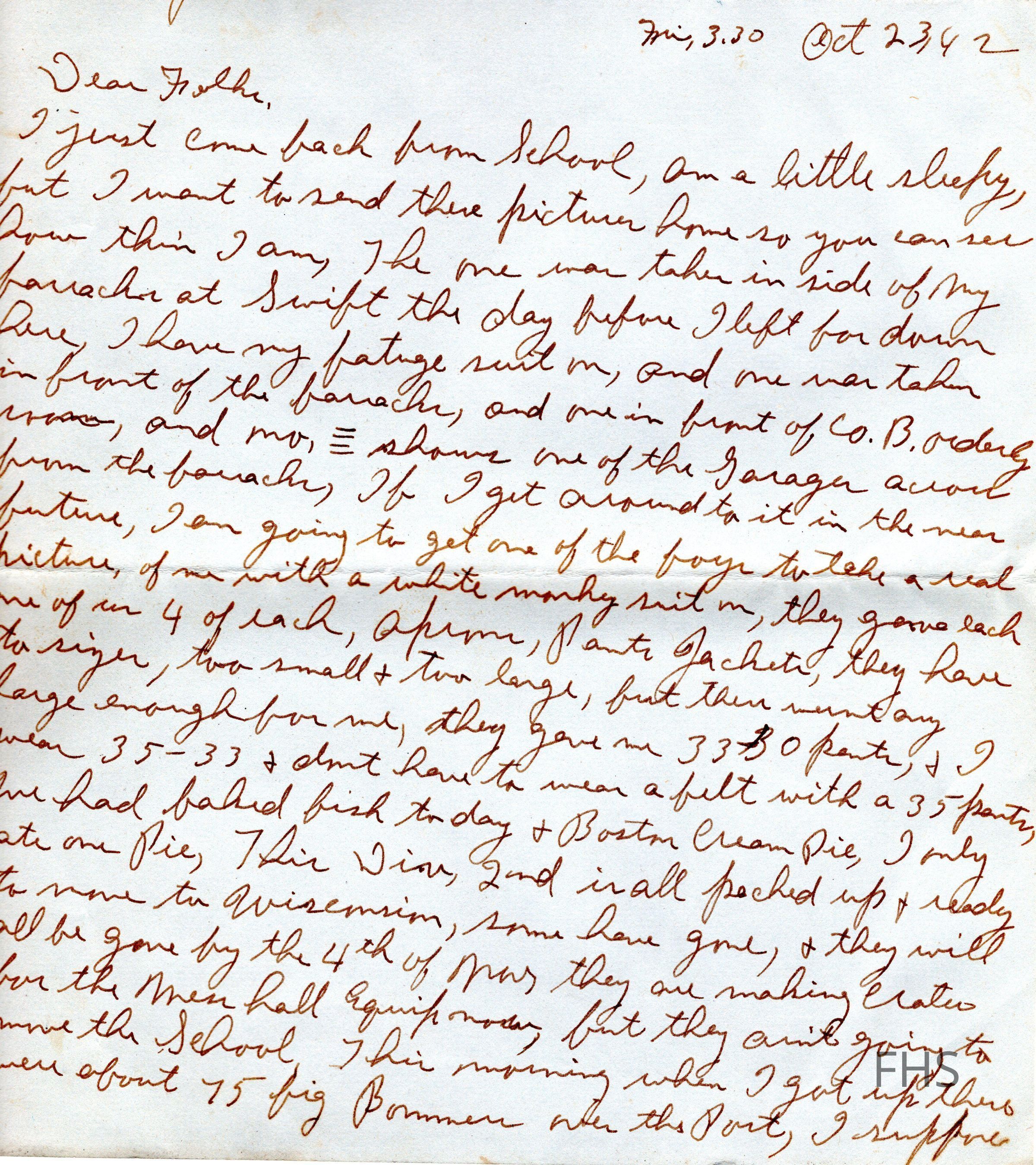 A letter written by Clarence Dahman to his family during WWII in 1942.Collection