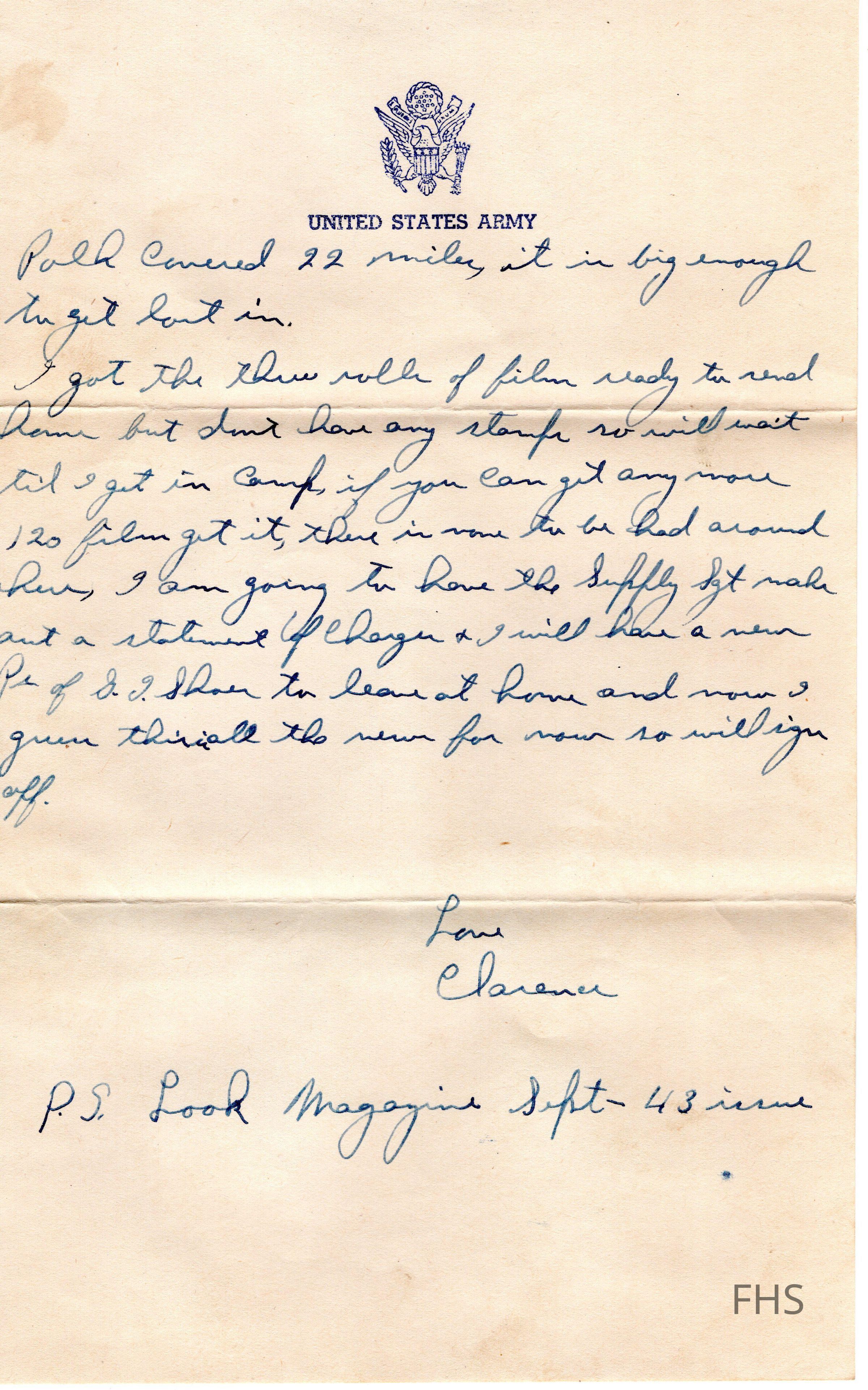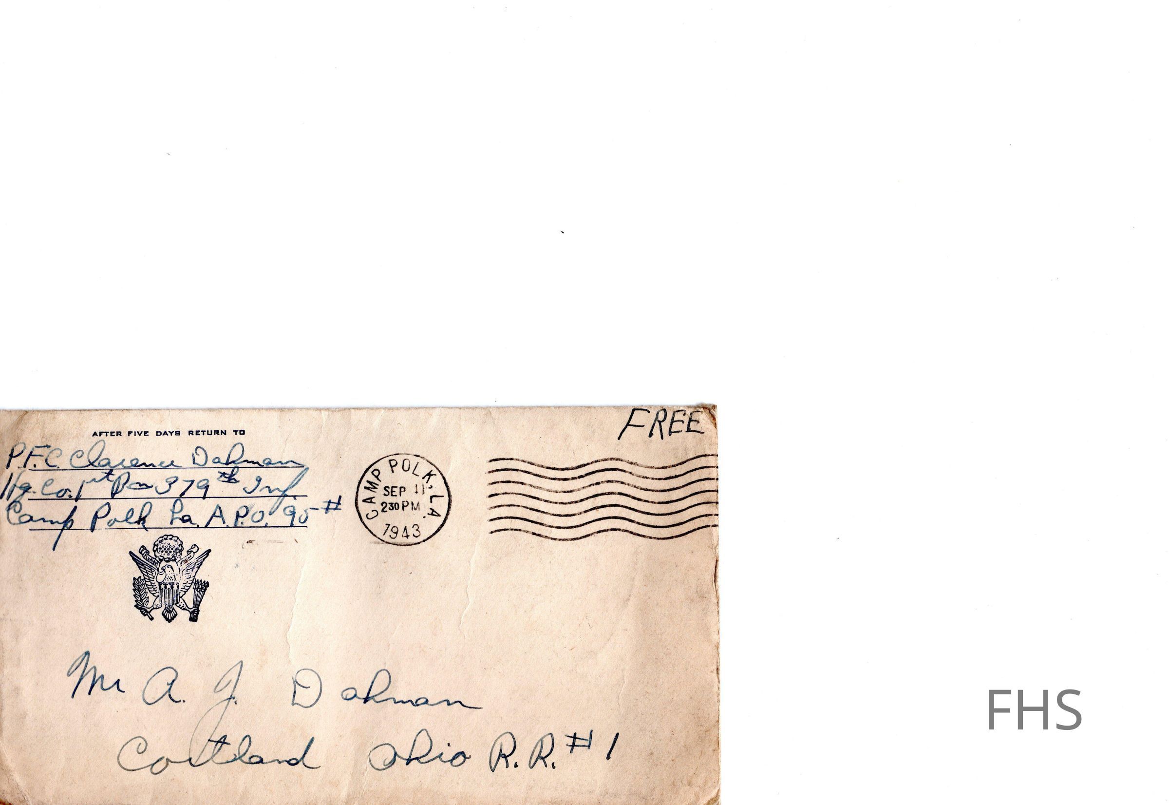 A letter written by Clarence Dahman to Adam John Dahman while serving in World War II in 1943.Collection