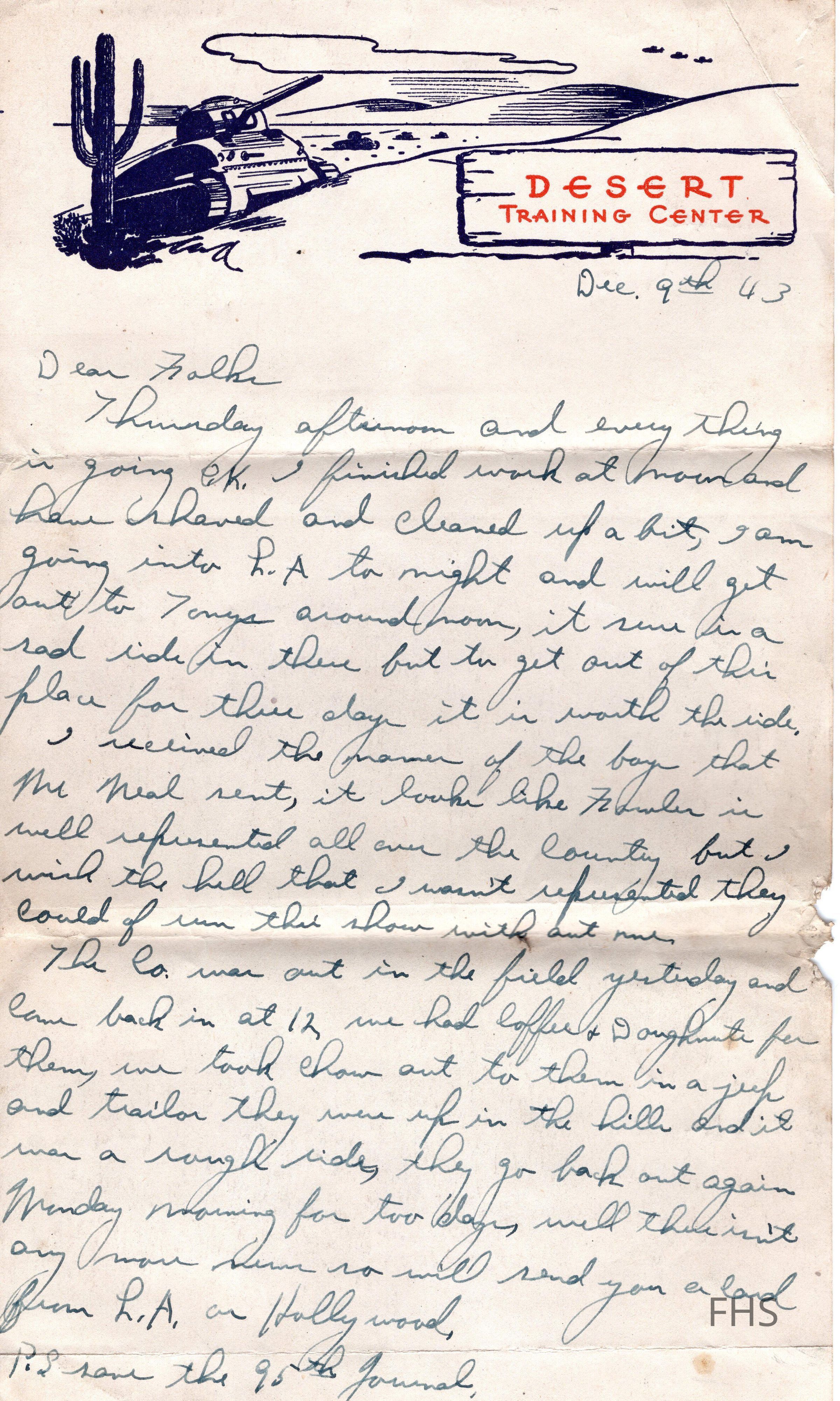 A letter sent by Clarence Dahman to his family while he served in World War II in 1943.Collection