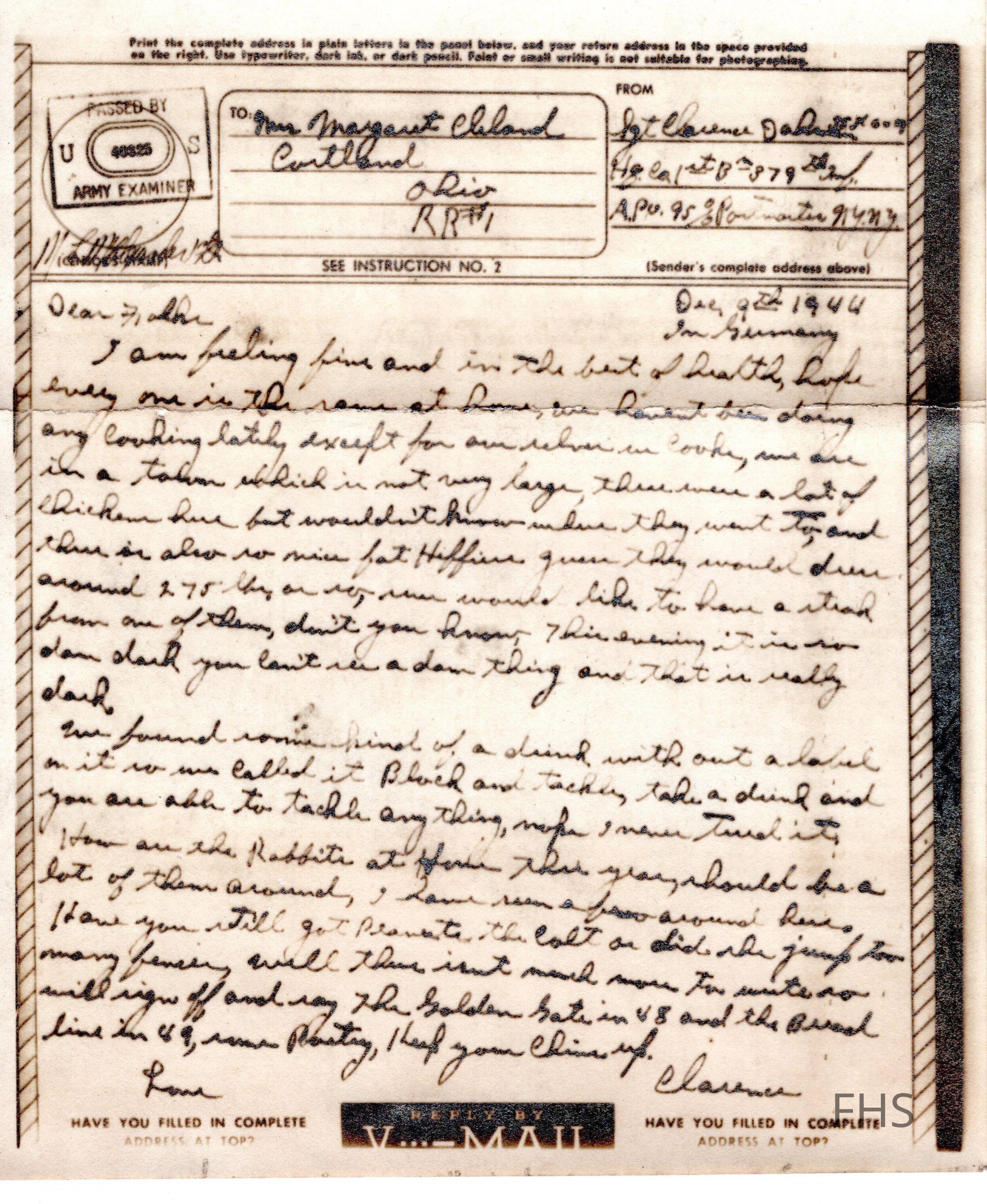 A letter written by Clarence Dahman to Margaret Cleland, his sister, while serving in WWII in 1944.Collection