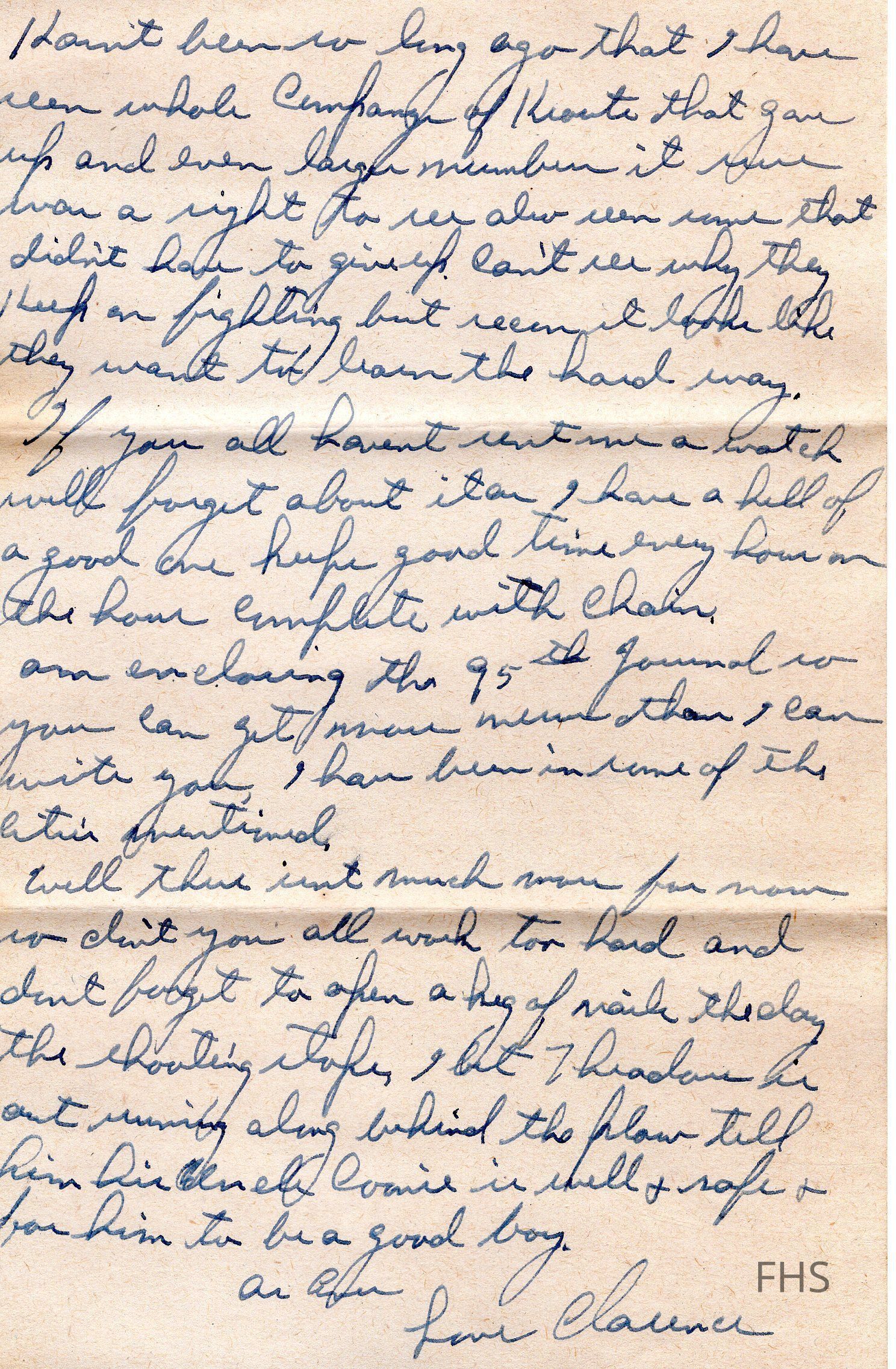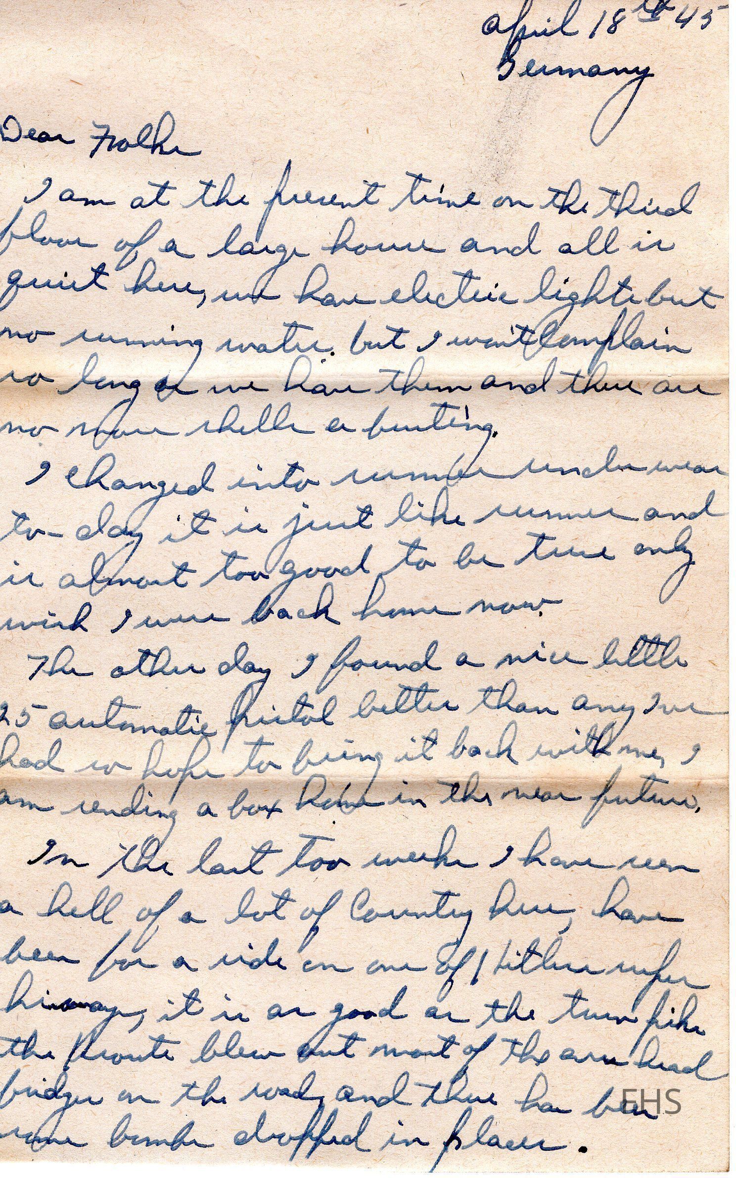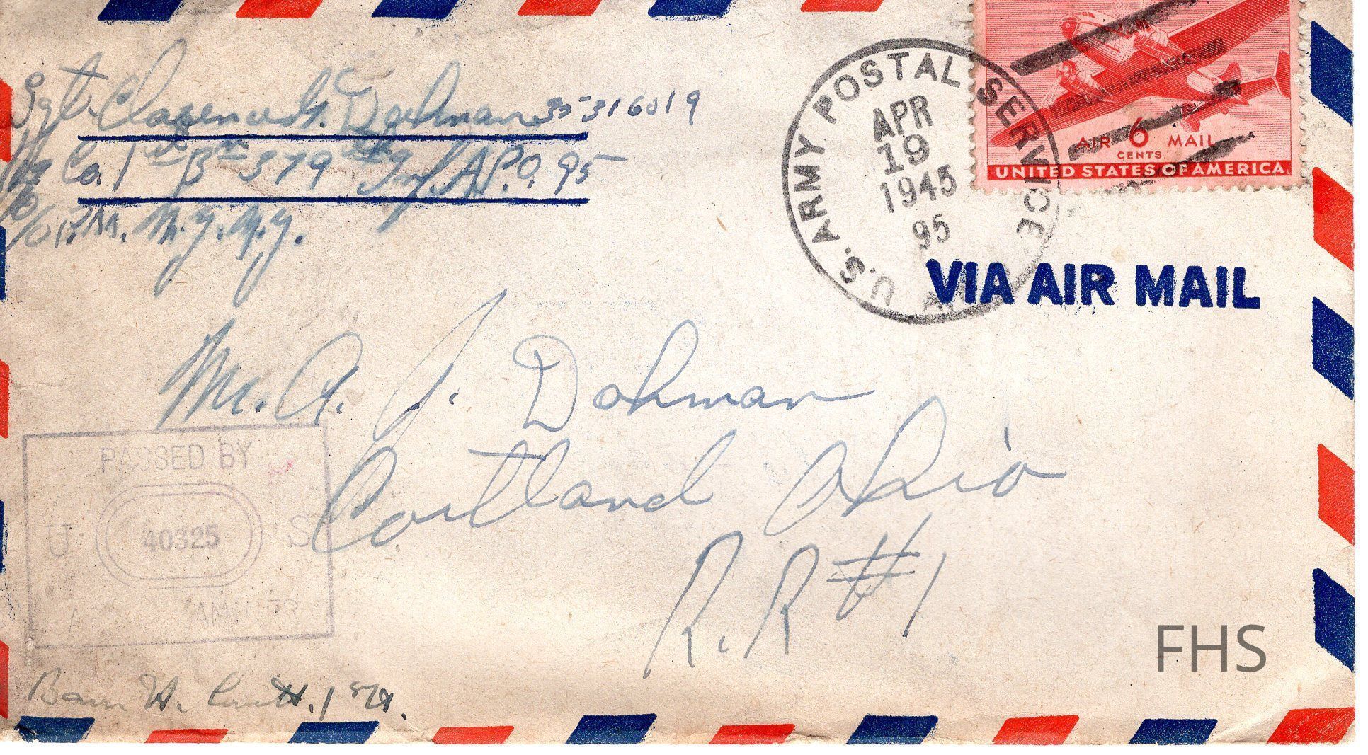 A letter written by Clarence Dahman to A. J. Dahman, his father, while he was serving in World War II in 1945.Collection