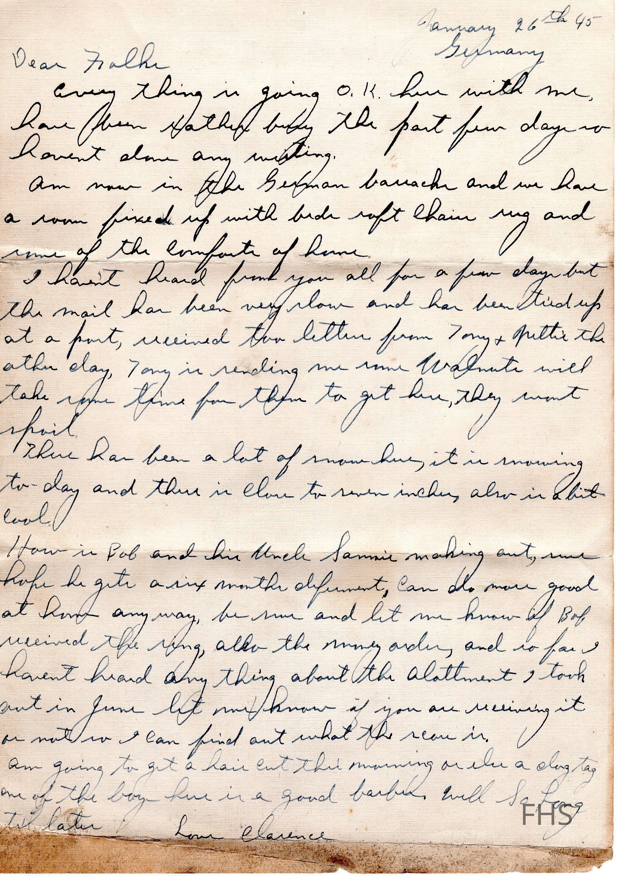 A letter written by Clarence Dahman to his family while serving in World War II in 1945.Collection