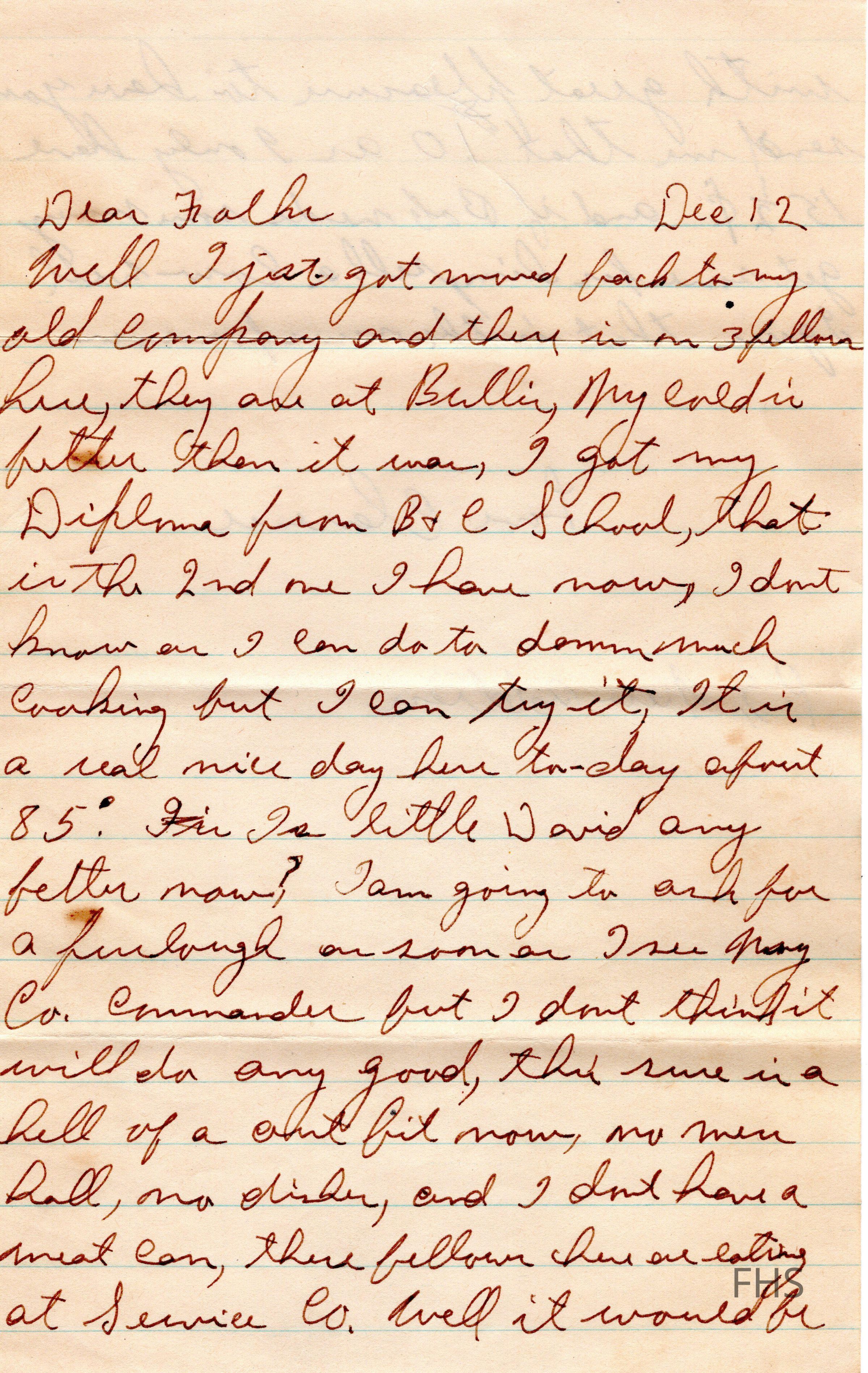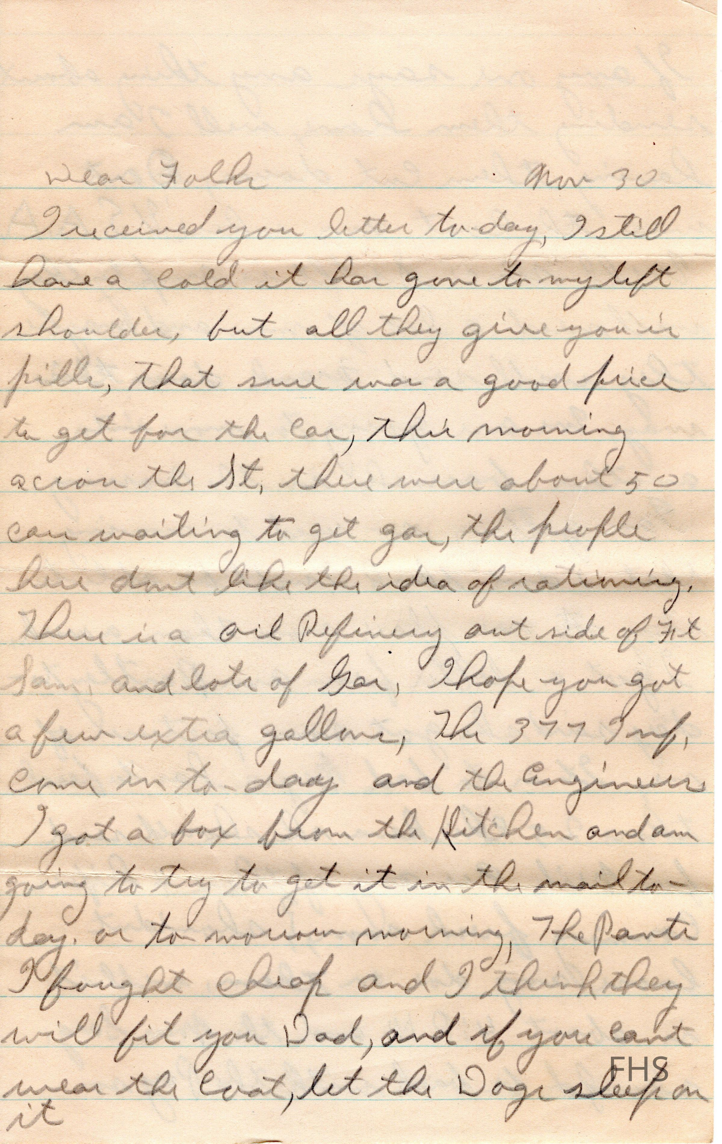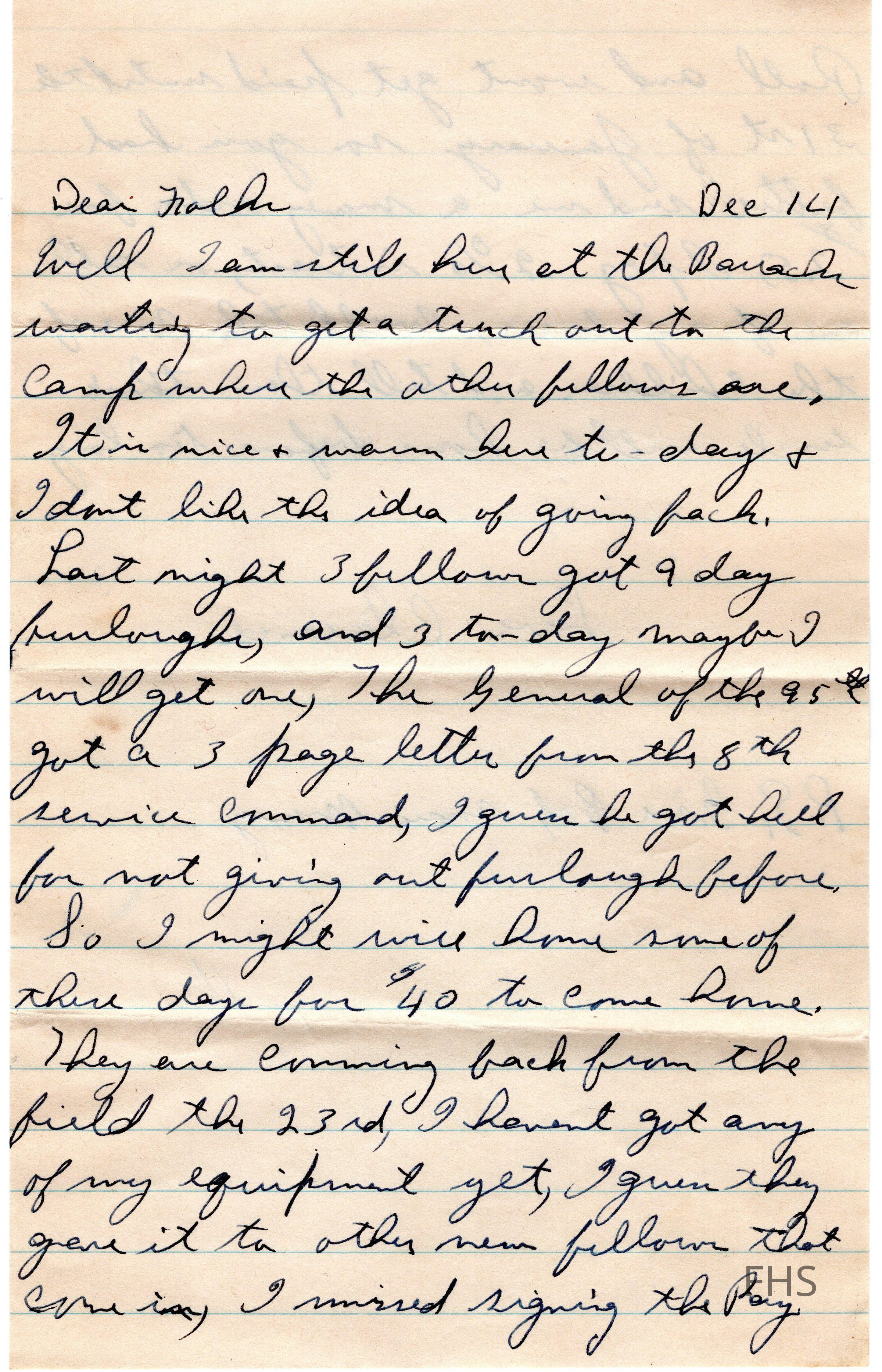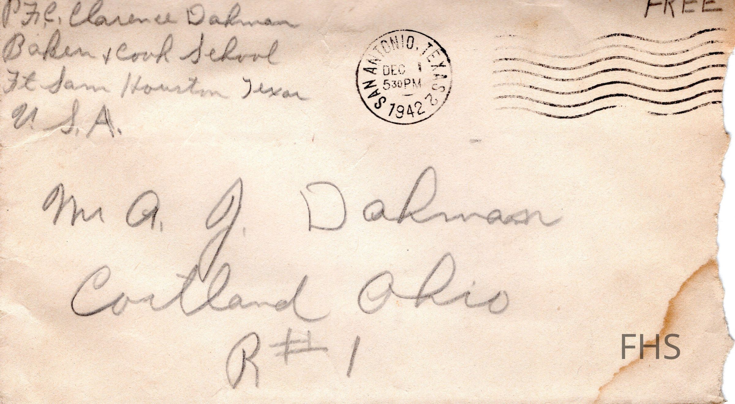 Four letters written by Clarence Dahman to his family during WWII in 1942. Clarence wrote these letters between Nov. 30 and Dec. 14 and then mailed them in one envelope.Collection