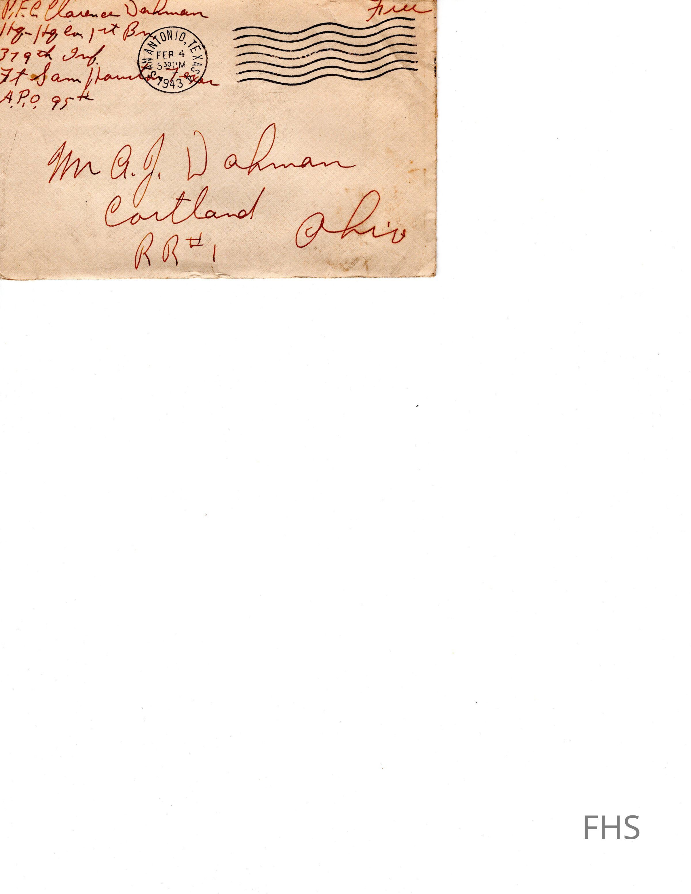 Two letters written by Clarence Dahman to his family during WWII in 1943. He mailed both letters in the same envelope.Cataloged By
