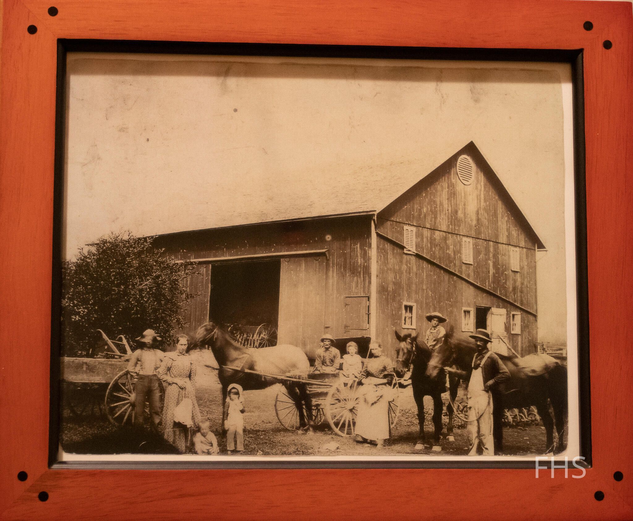 A photograph of the Charles Evans family farm in Western Ohio taken in 1898. Charles was Walter Trumbull’s maternal grandfather. Pictured are Walter Saltzburg, Nancy A. Evans , Morris, Rob, Grandfather Evans, Cled Gable (Roose), Aunt Belle, Bill (William) Gable, Charles Evans.Cataloged By