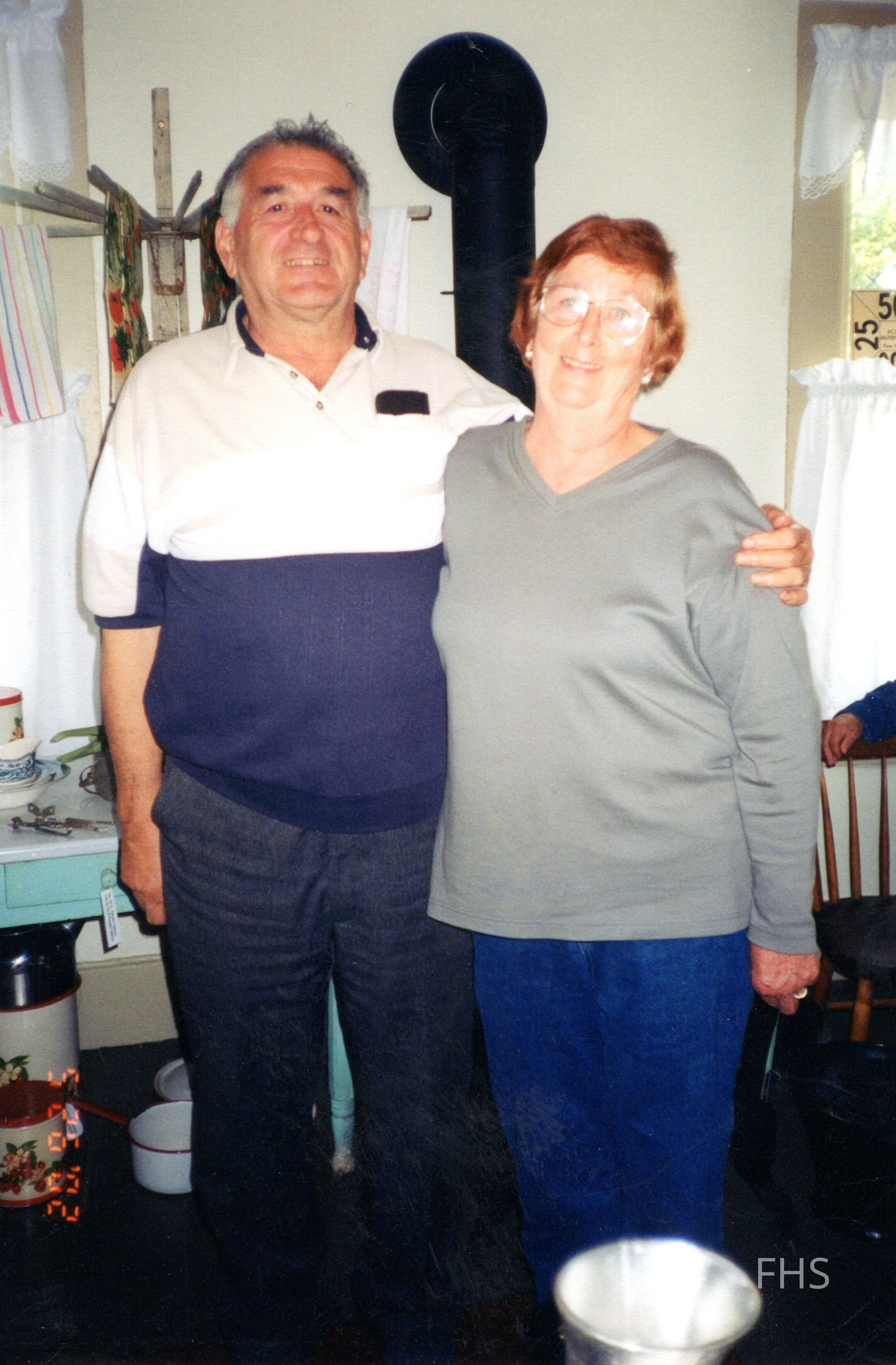 A photograph taken at the Butts House during the Fowler Historical Society Open House in 2002. The people are Ben Martin and Mary Martin.Cataloged By
