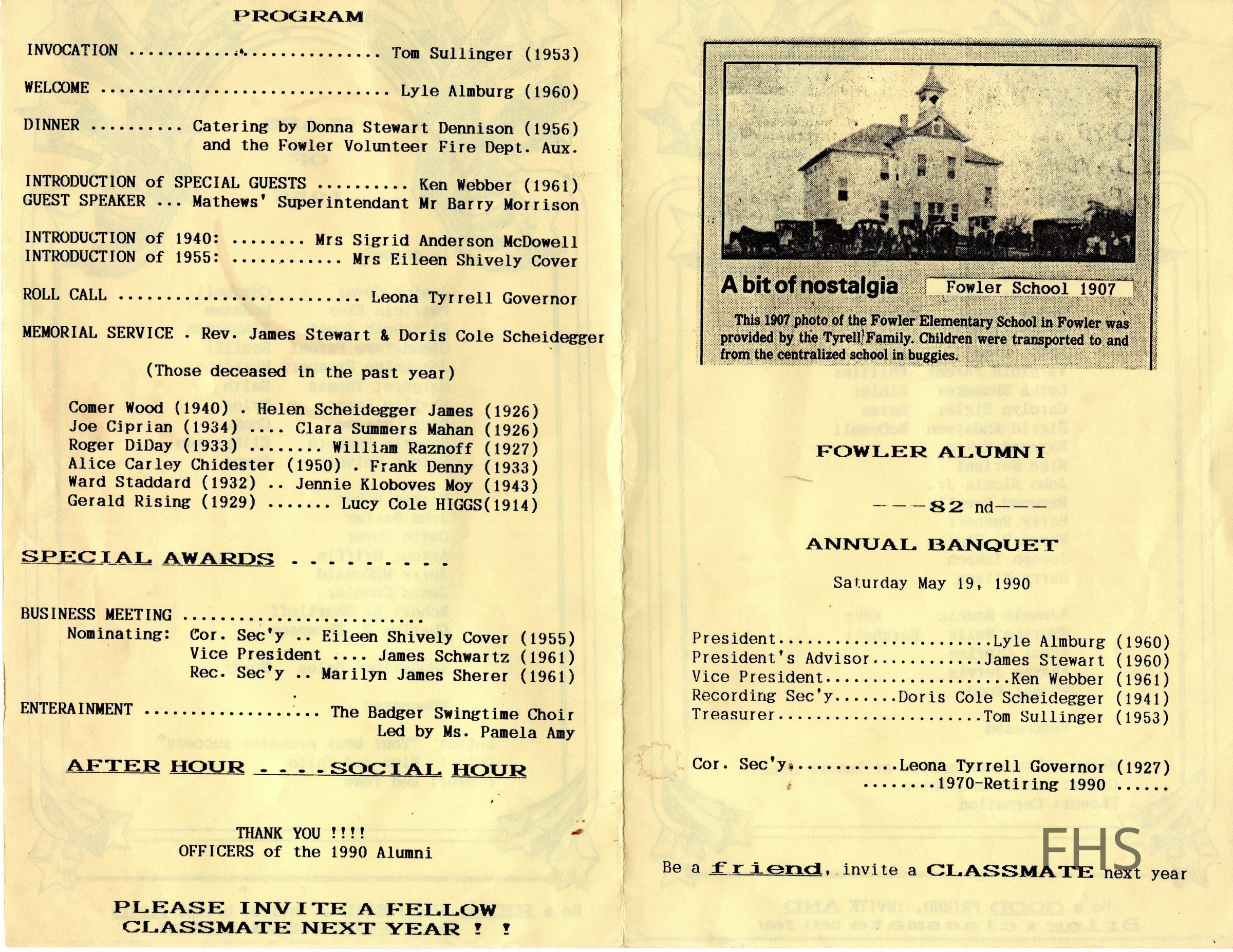 Fowler Alumni Banquet Program, 1990