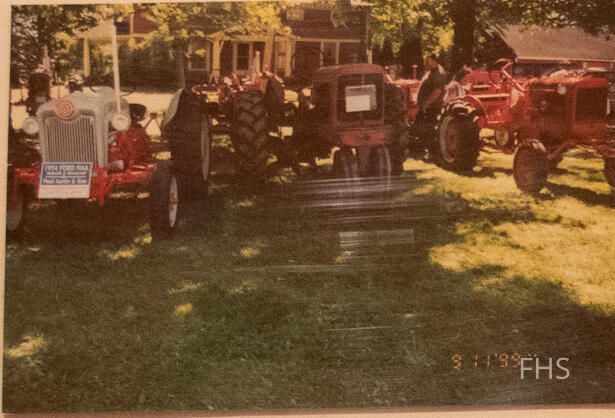 A photograph of various tractors on display taken at the Fowler Bicentennial in 1999.