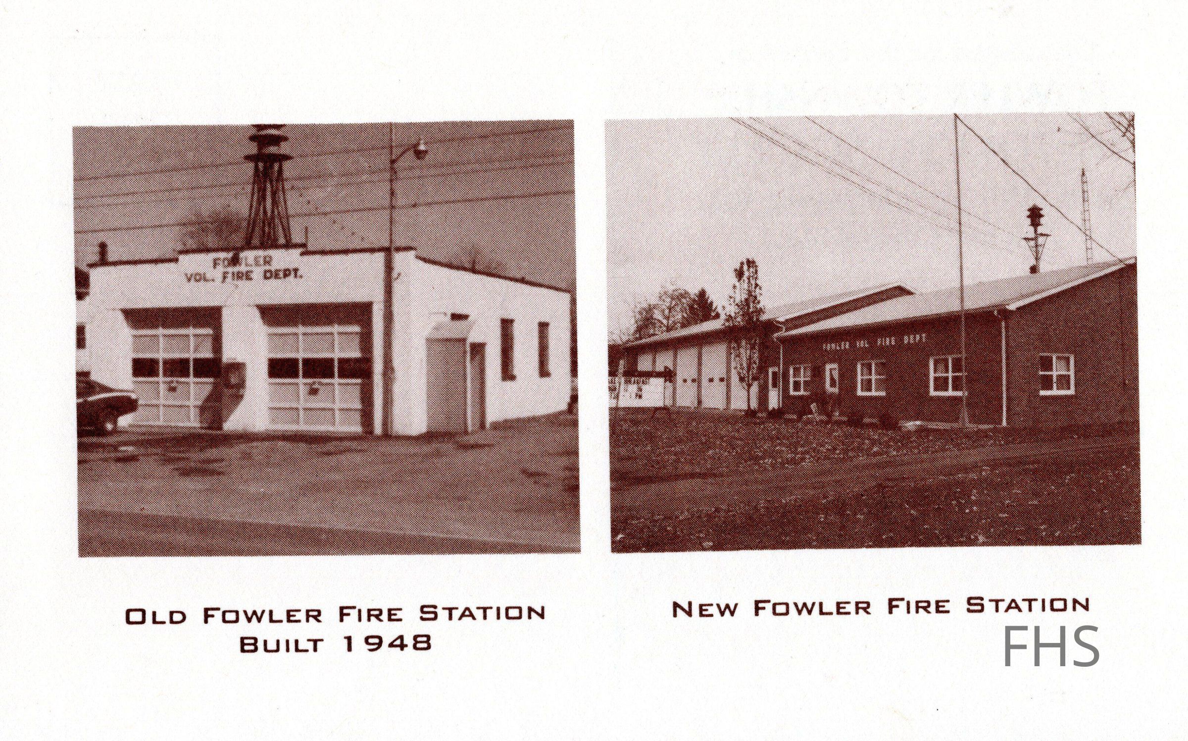 A postcard of the old Fowler Fire Station and the new Fowler Fire Station.Cataloged By