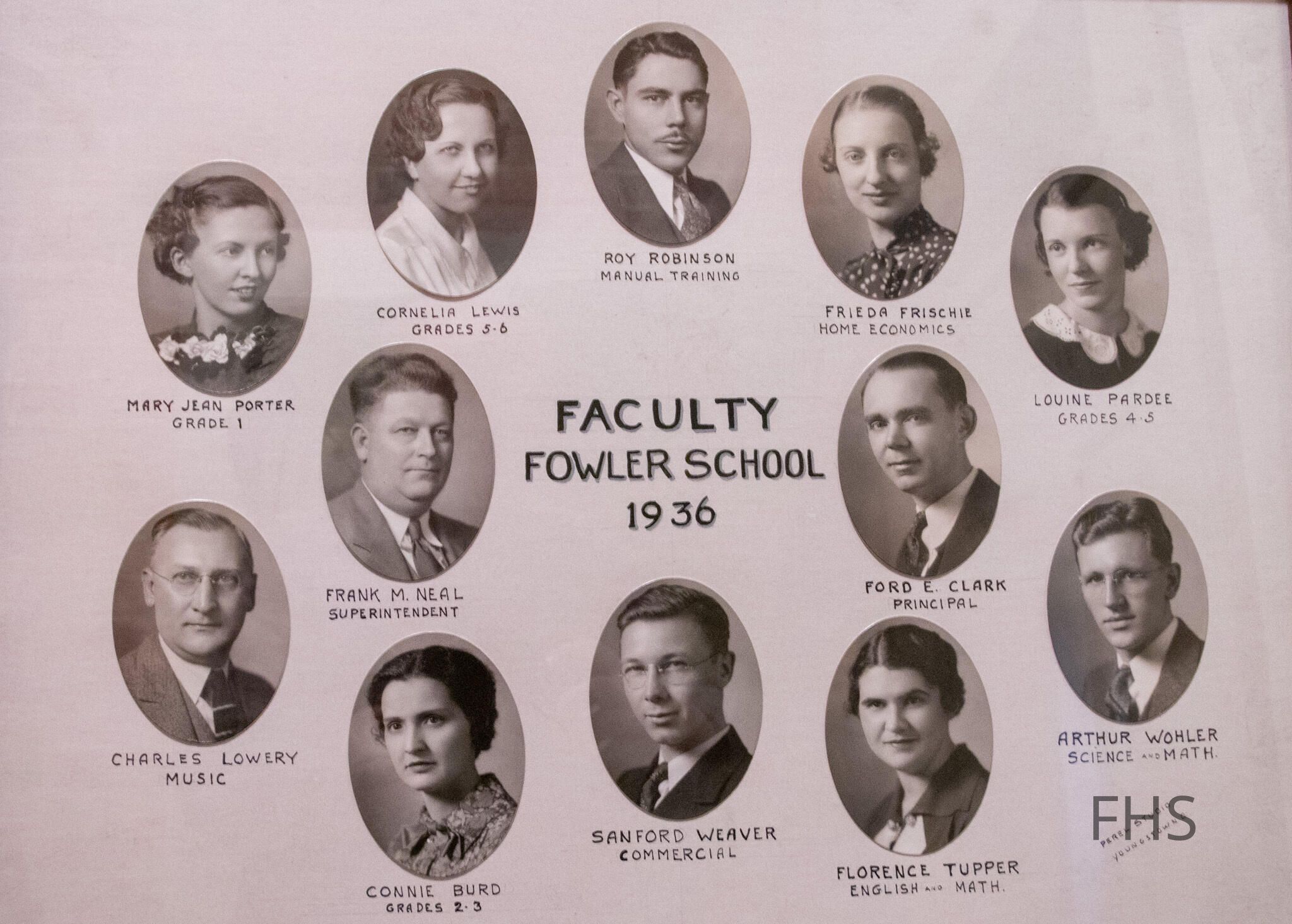 Photograph of the faculty from Fowler High School in 1936.