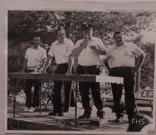 A photograph of the Fowler Fair parade judges fron 1976. Pictured are Bill Lewis, Paul Mc combs, Jim Marshall and Tom Redecry.Cataloged By