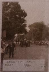 A photograph of a cross cut saw float in the Fowler Parade in 1980.Cataloged By