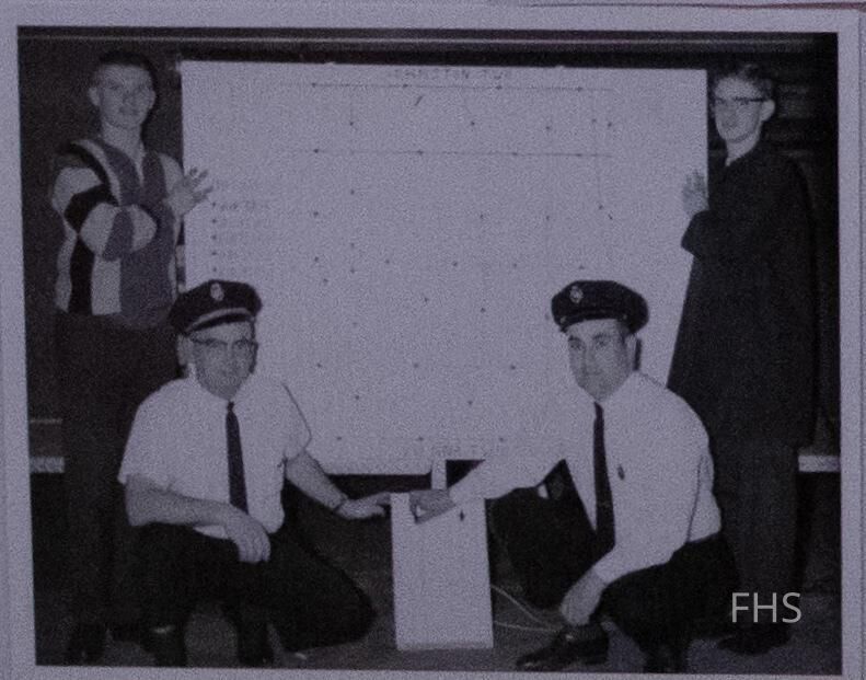 A photograph of the fire department’s Fowler Township map and call board. It was used to keep track of calls and location of fires and emergencies in progress.
