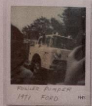 A photograph of a Fowler 1971 pumper truck in the Fowler Parade in 1976.Cataloged By