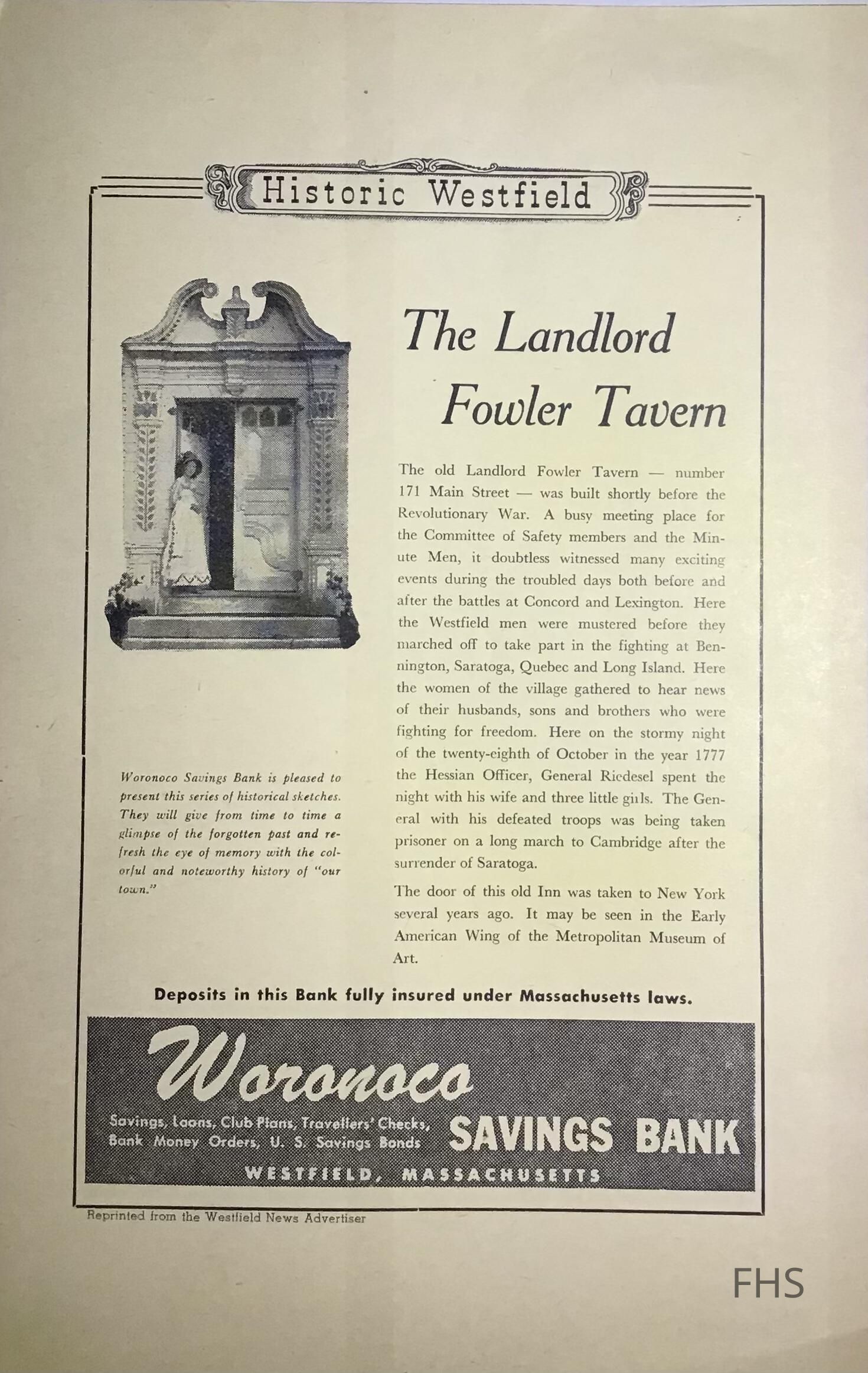 Historic Sketch of Westfield, MA, Landlord Fowler Tavern, 2005Entry/Object ID